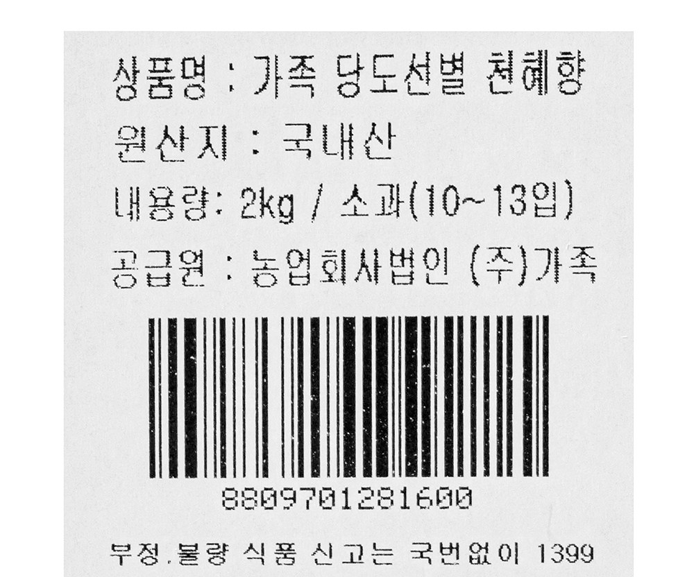 | 제조연월일, 소비기한 또는 품질유지기한 | 제조년월일 : 2026년 04월 28일 이후인 제조상품 | 세부 품목군별 표시사항 | 농수산물 : 유전자변형(해당 없음) / 지리적 표시사항(해당 없음) |