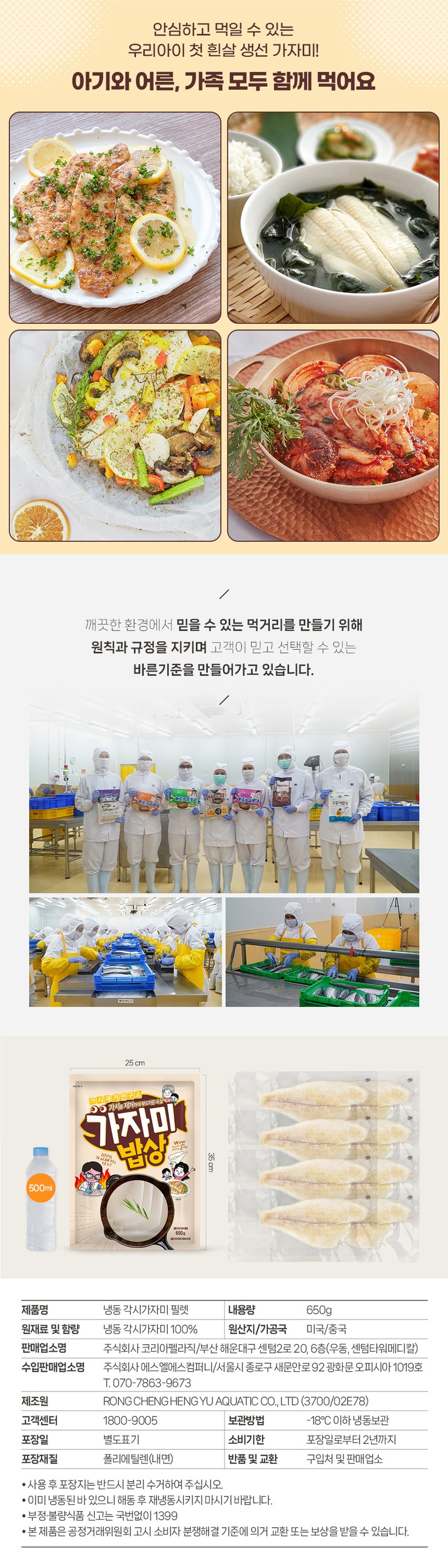 | 품목 또는 명칭 | 가자미밥상 | 포장단위별 내용물의 용량(중량),수량,크기 | 1개당 650g |