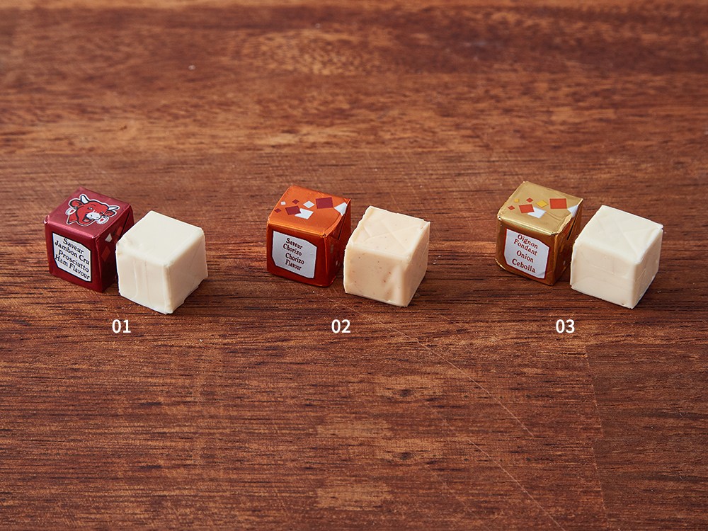 01 프로슈토향 벨큐브 02 초리조향 벨큐브 03 어니언맛 벨큐브