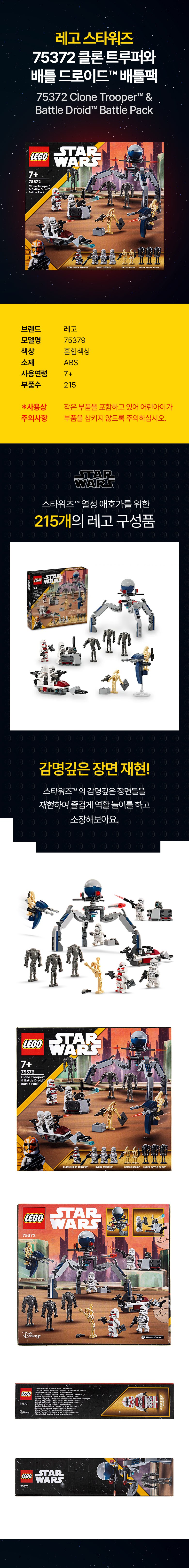 | 품명 및 모델명 | 레고 스타워즈 75372 클론 트루퍼TM와 배틀 드로이드TM 배틀팩 | KC 인증정보 | CB061S051-4001 |