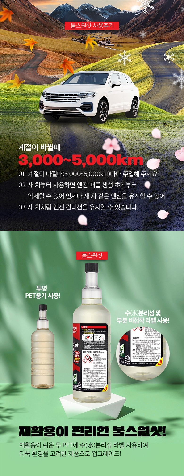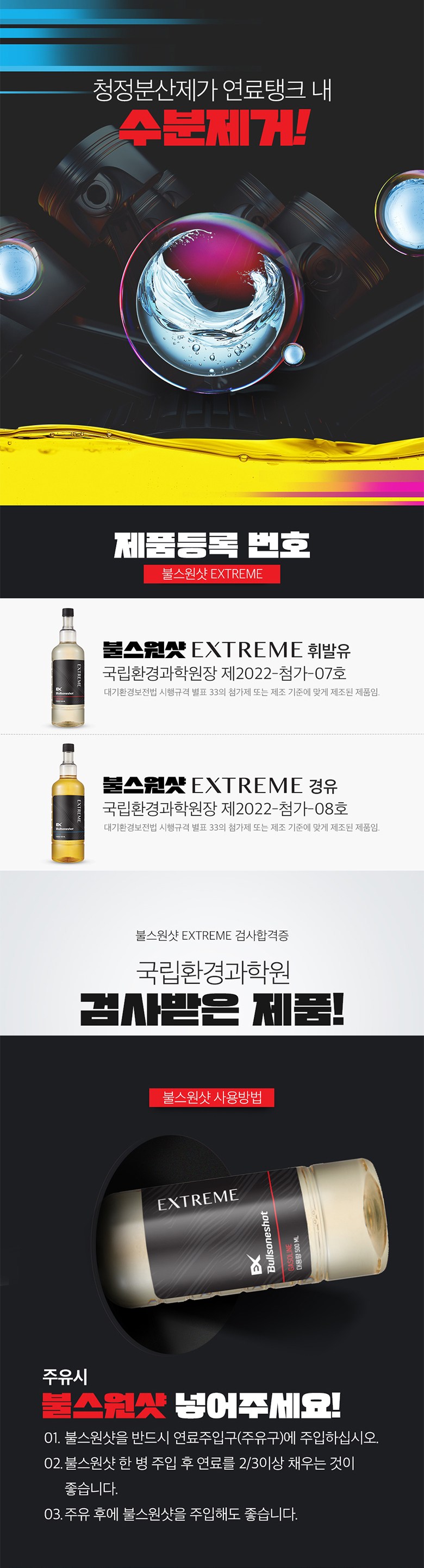| 품명 및 모델명 | 자동차 엔진 세정제 / 불스원샷 익스트림 휘불유차용 불스원샷 하이마일리지 (다목적첨가제) | 동일모델 출시년월 | 2024. 01 |