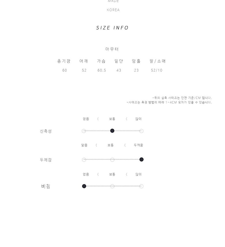 | 제조국 | 상품 상세페이지 참조 | 세탁방법 및 취급시 주의사항 | 상품 상세페이지 참조 |