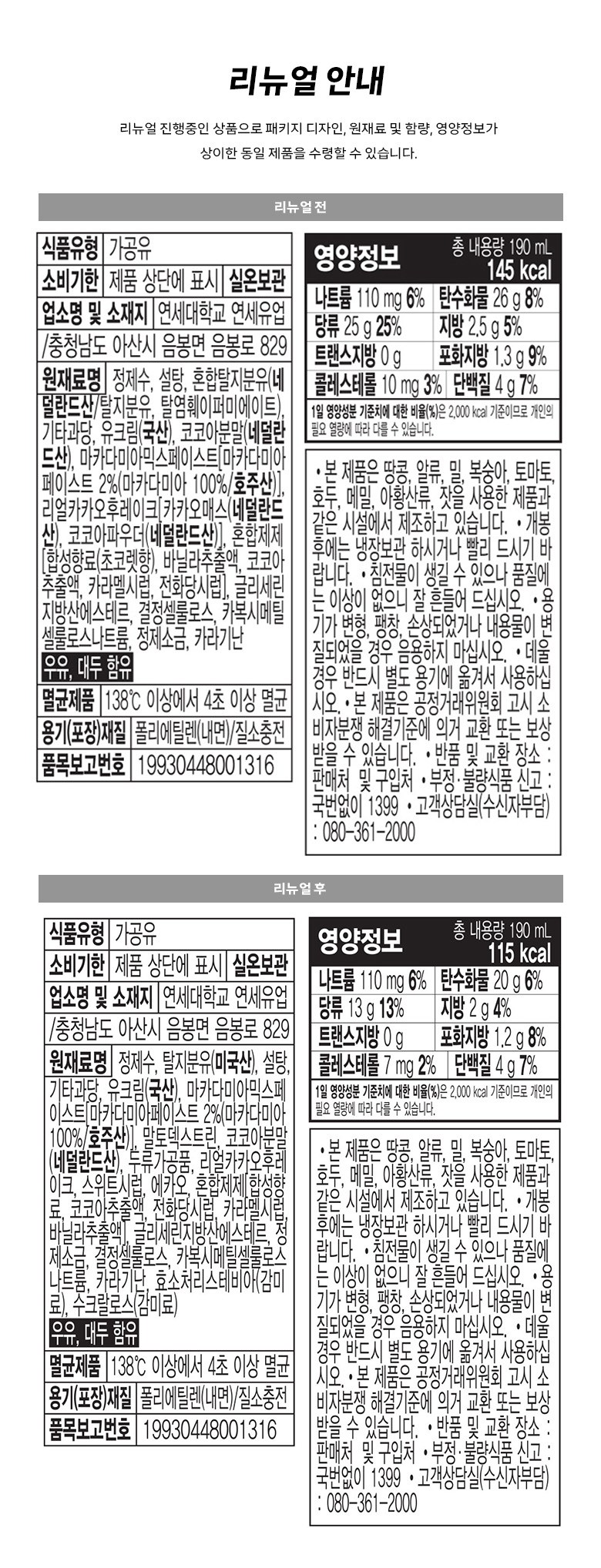 | 제품명 | 마카다미아 초코우유 | 식품의 유형 | 컨텐츠 참조 |