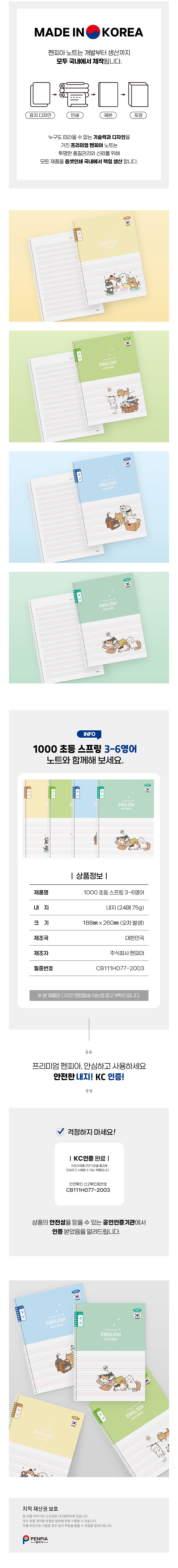 | 품명 및 모델명 | 펜피아 1000 초등 스프링 3-6 영어 노트 | KC 인증정보 | CB111H077-2003 |
