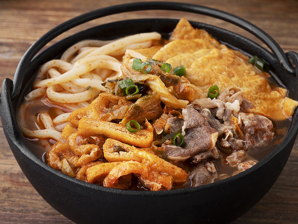 얼큰한 김치전골우동