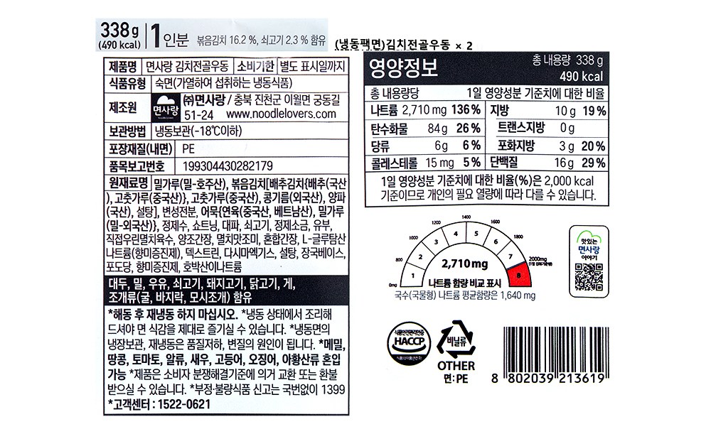 | 포장단위별 내용물의 용량(중량), 수량 | 338g*2개 | 원재료명 및 함량 | 컨텐츠 참조 |