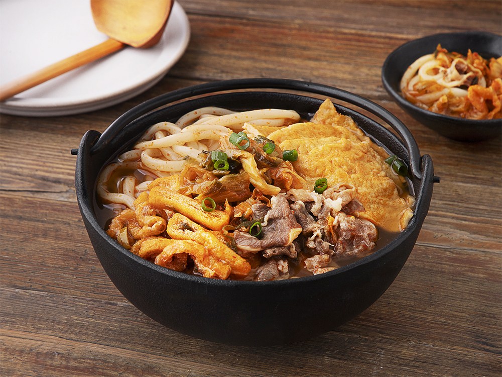 김치전골우동만 있다면 우리 집도 순식간에 포차로 변하죠. 물만 붓고 끓이면 완성되니, 간편하게 즐겨보세요. 칼칼한 볶음김치와 고소한 쇠고기, 부드러운 어묵의 조화가 일품이랍니다. 얼큰한 국물과 함께 탱탱한 면발을 건져 먹다 보면 금세 바닥을 비우게 될 거예요.