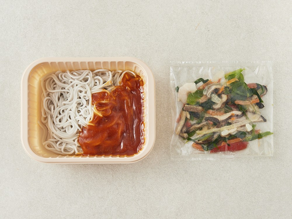 1. 랩을 제거하고, 고명 재료를 당면 위에 얹어주세요.