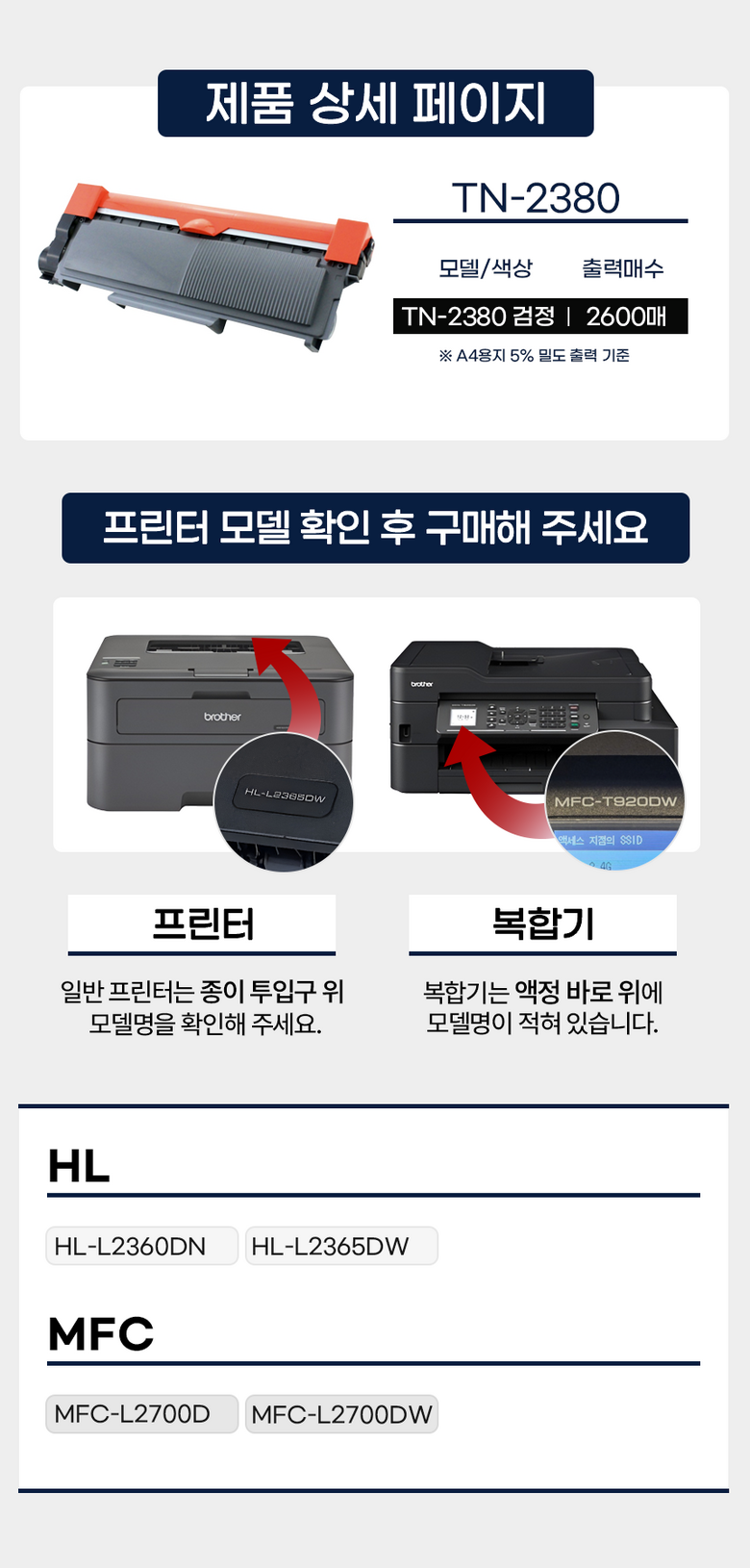 - 호환기종: HL-L2365DW,MFC-L2700D,MFC-L2700DW,HL-L2360DN