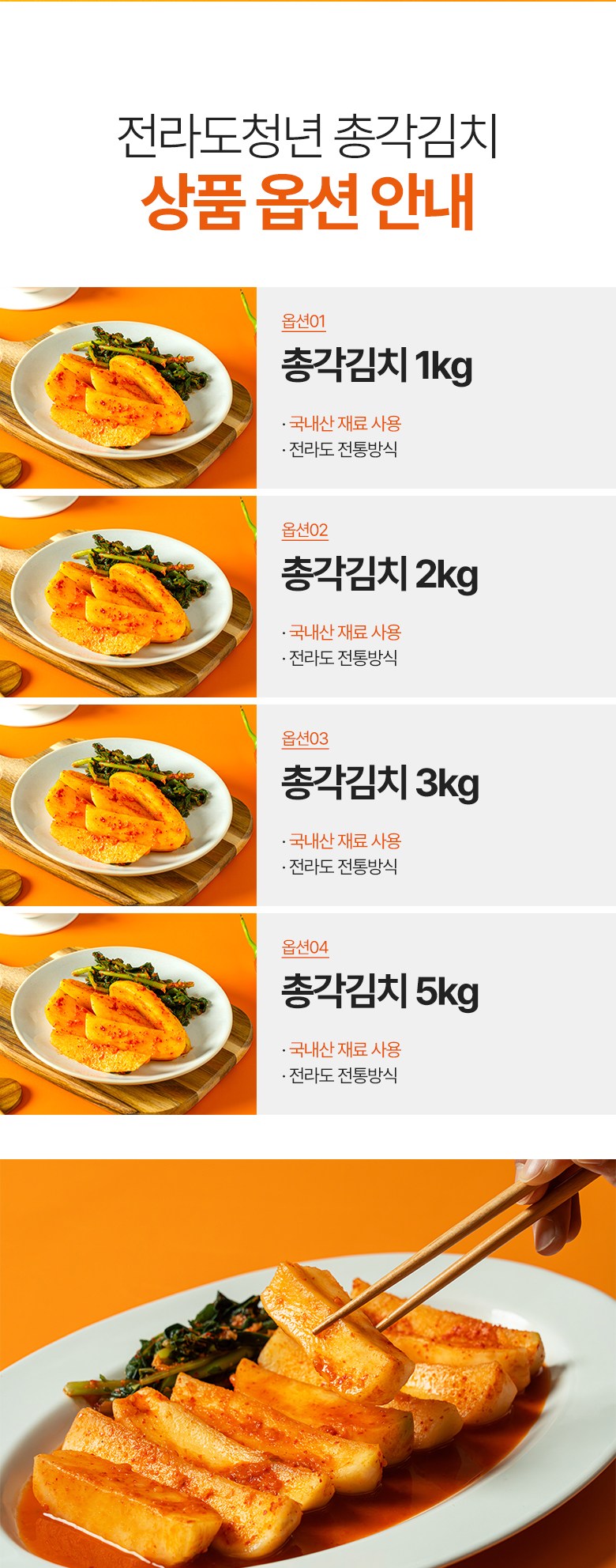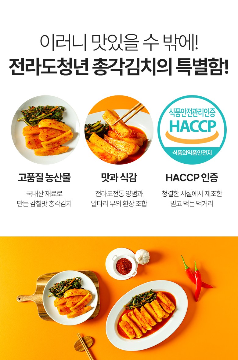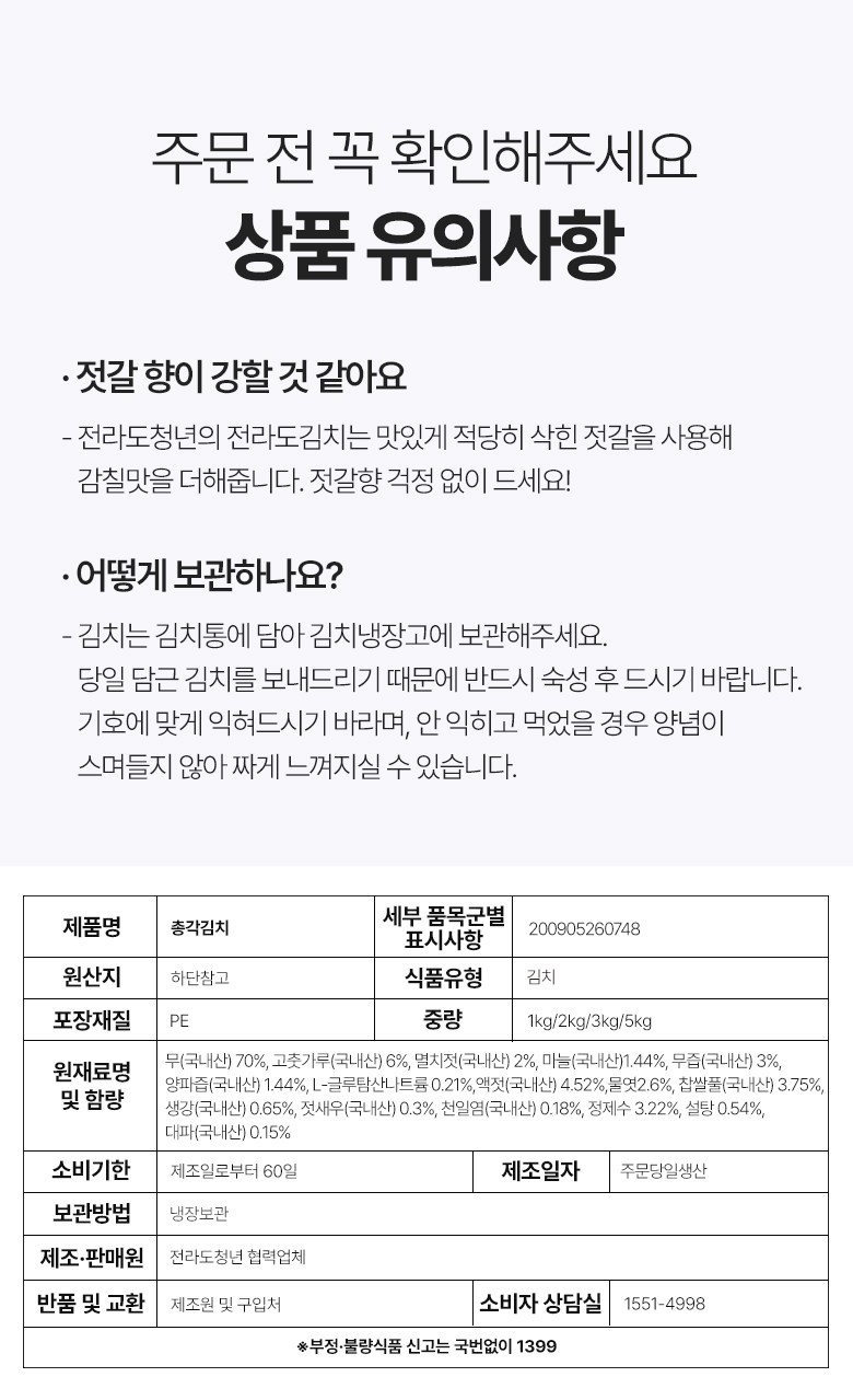 | 품목 또는 명칭 | 총각김치 | 포장단위별 내용물의 용량(중량),수량,크기 | 1kg,2kg,3kg,5kg |