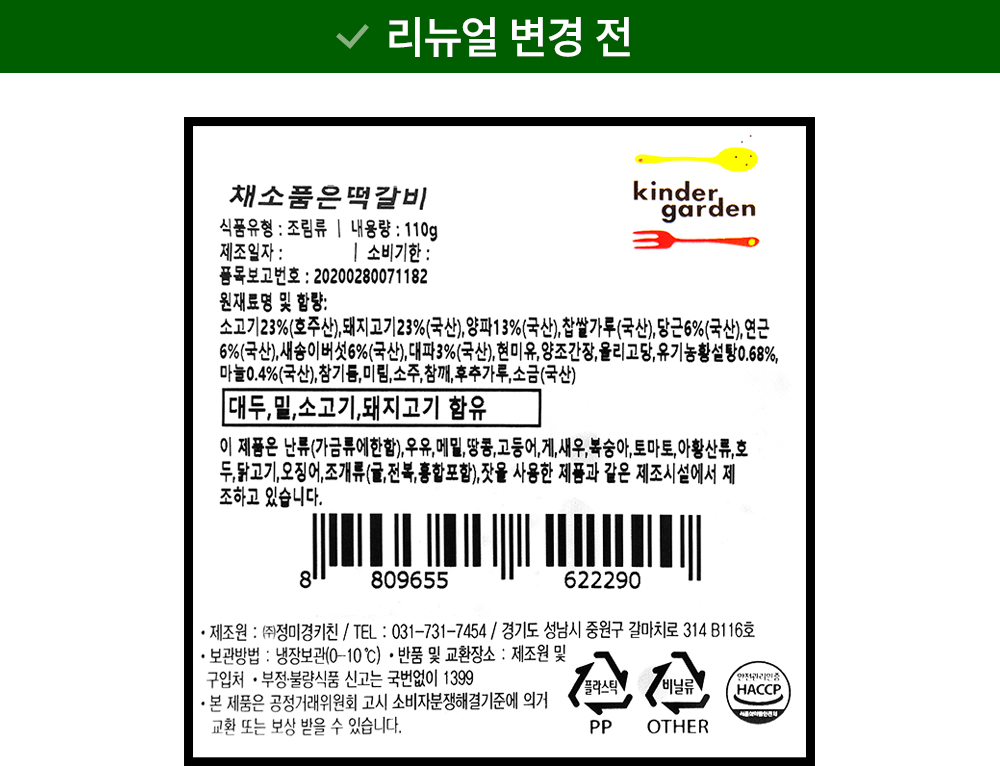 | 제품명 | 채소품은 떡갈비 | 식품의 유형 | 컨텐츠 참조 |