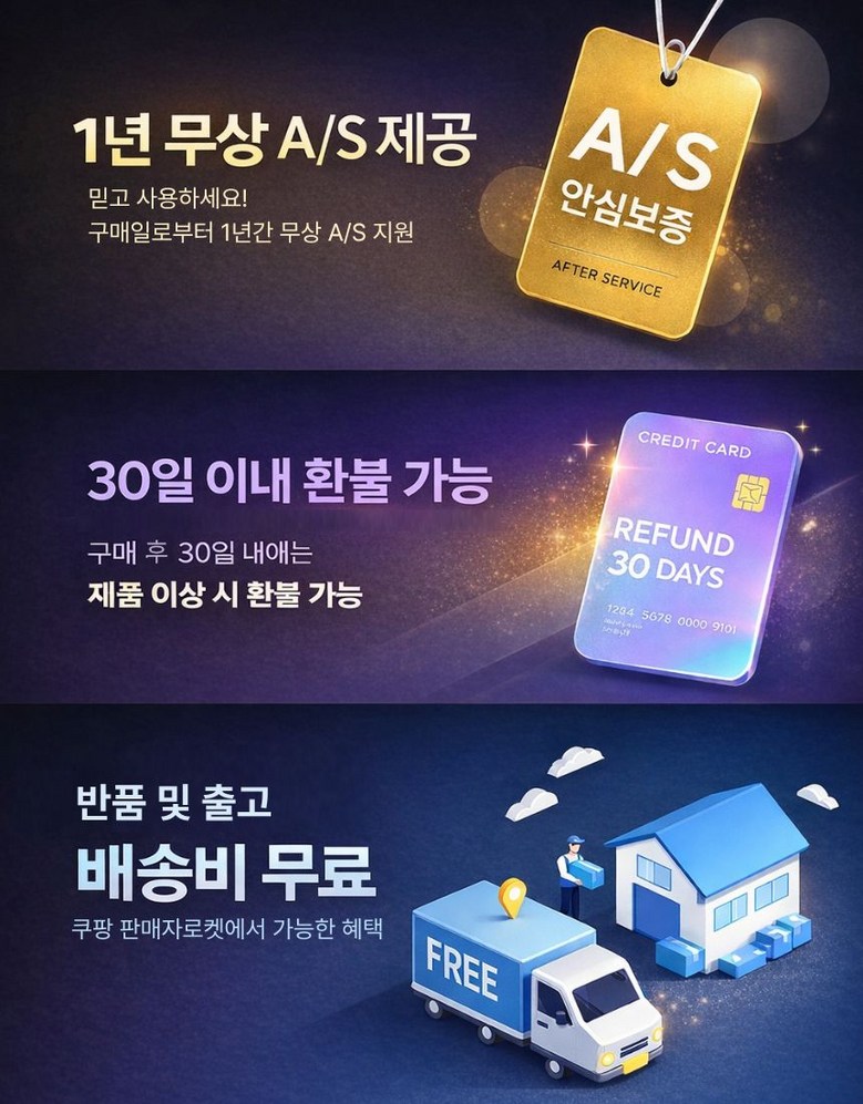 | 소비자상담 및 교환반품 문의 | 쿠팡고객센터 1577-7011 배송 및 환불/교환에 대한 문의는 마이쿠팡-고객센터 내 상담하기를 이용해주세요. | ||