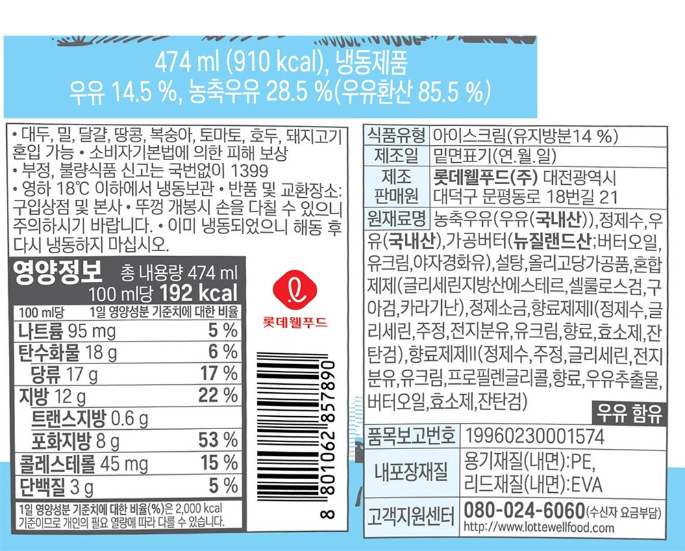 | 포장단위별 내용물의 용량(중량), 수량 | 474ml x 6개 | 원재료명 및 함량 | 컨텐츠 참조 |