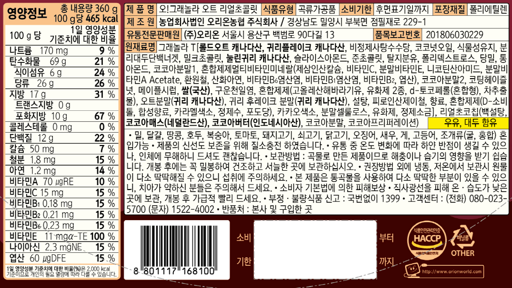 - 곡물 구분: 귀리/오트