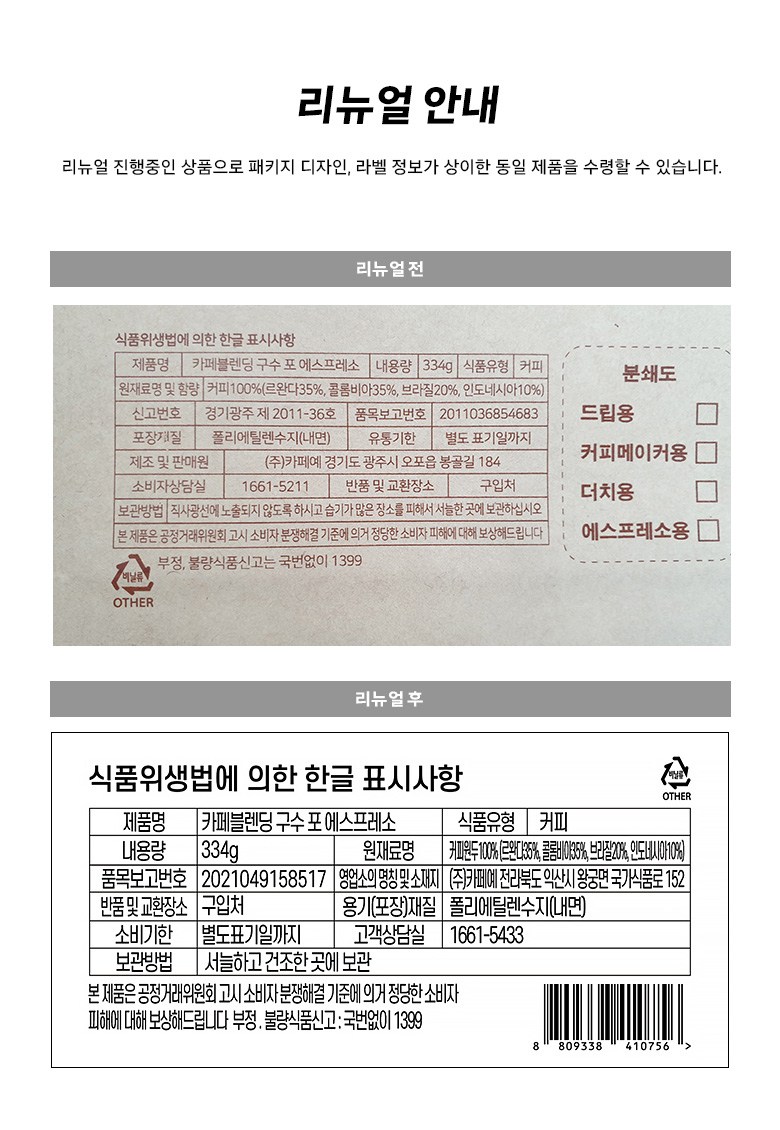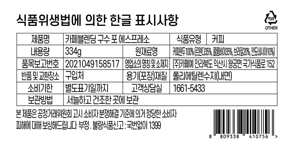 | 포장단위별 내용물의 용량(중량), 수량 | 334g | 원재료명 및 함량 | 컨텐츠 참조 |