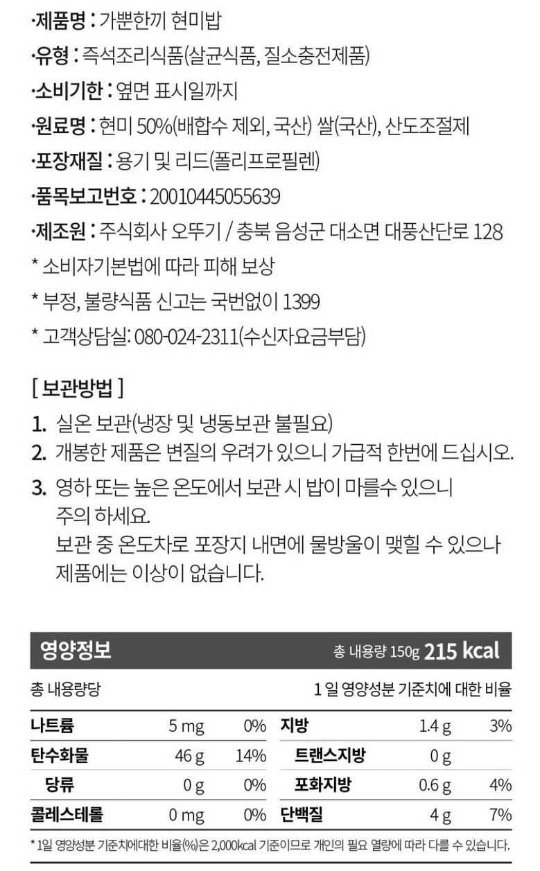 | 생산자 및 소재지 | 상품 상세페이지 참조 | 제조연월일, 소비기한 또는 품질유지기한 | 상품 상세페이지 참조 |