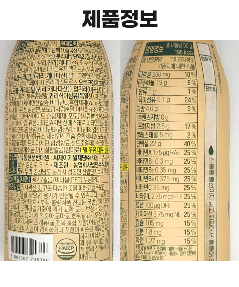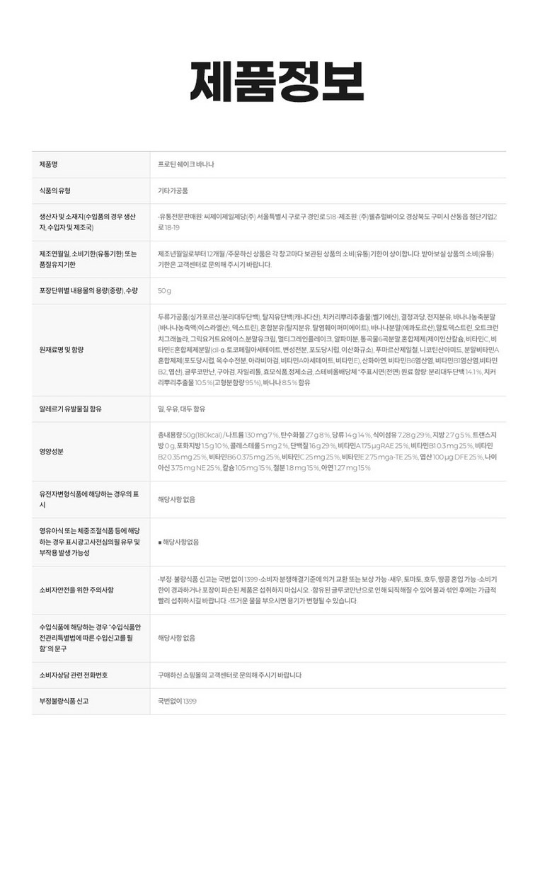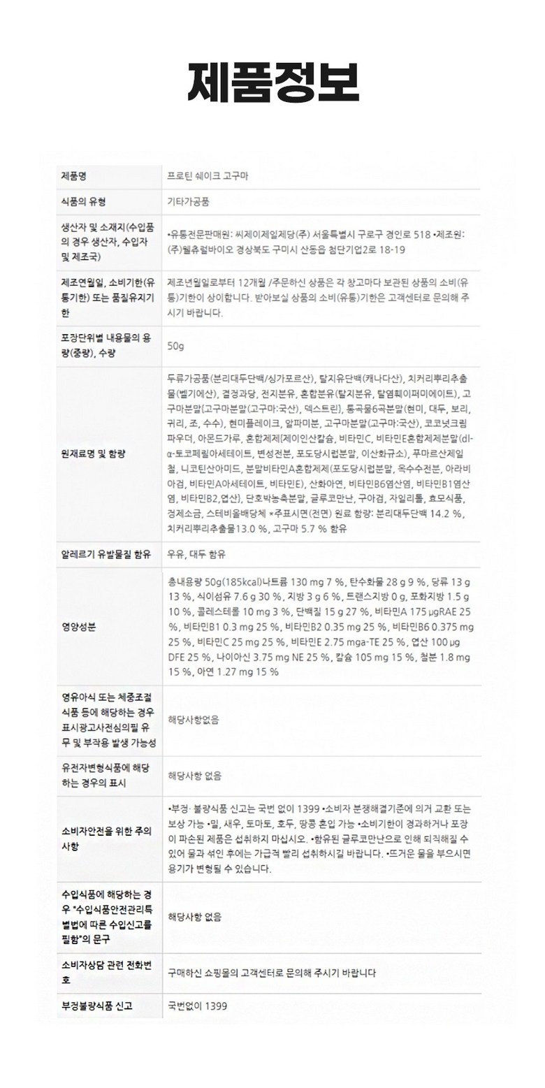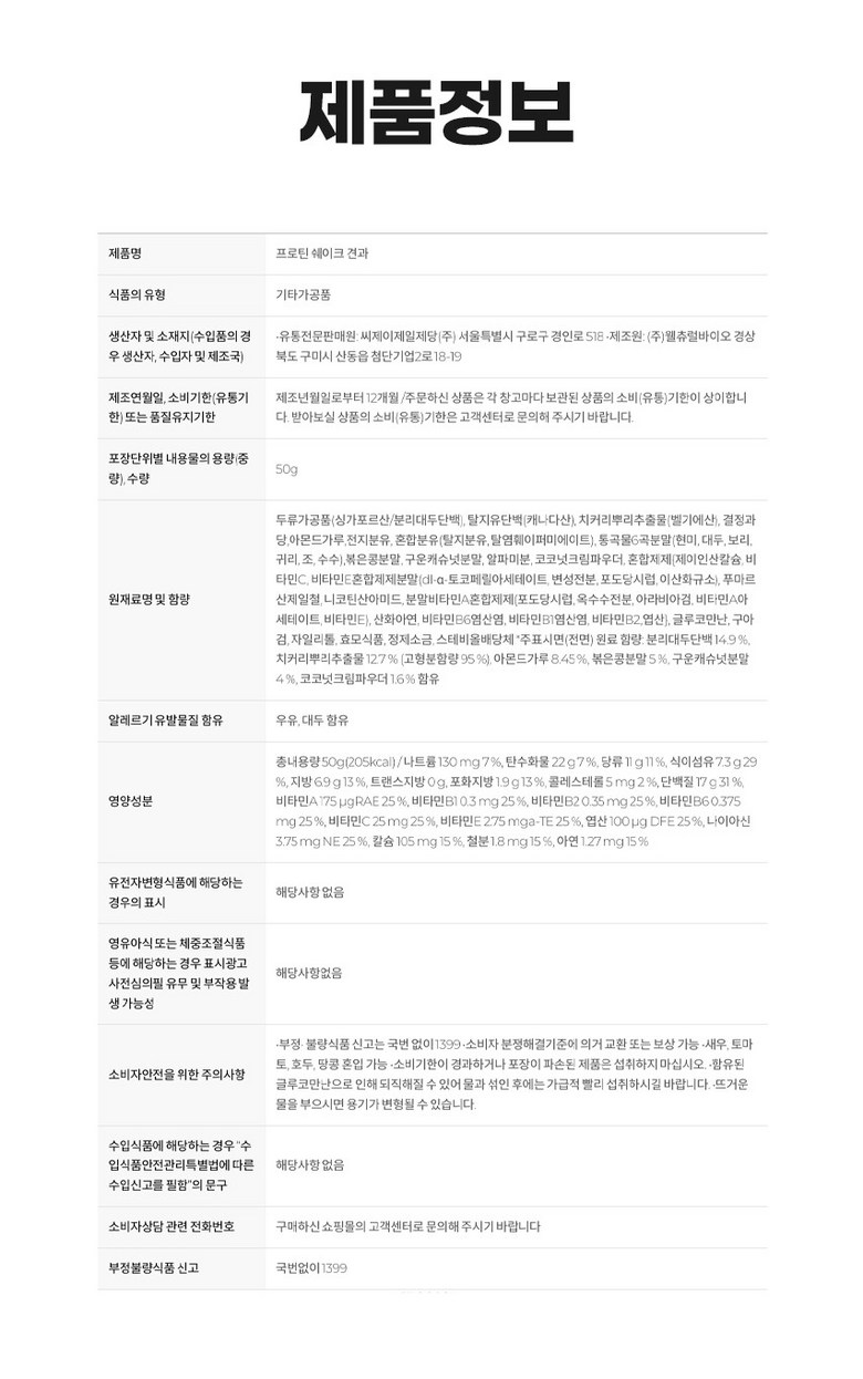 | 생산자 및 소재지 | 상품 상세페이지 참조 | 제조연월일, 소비기한 또는 품질유지기한 | 상품 상세페이지 참조 |