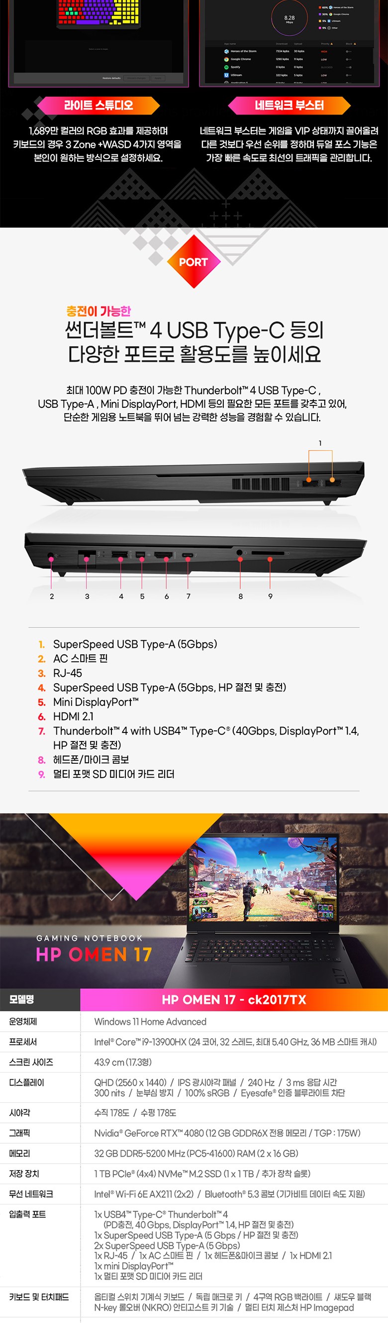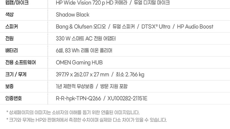 | 품명 및 모델명 | 노트북컴퓨터 / [모델명 : HP 2023 오멘 17 / 인증모델명 : OMEN by HP 17 Laptop PC] | KC 인증정보 | XU100282-21151E,R-R-hpk-TPN-Q266 |