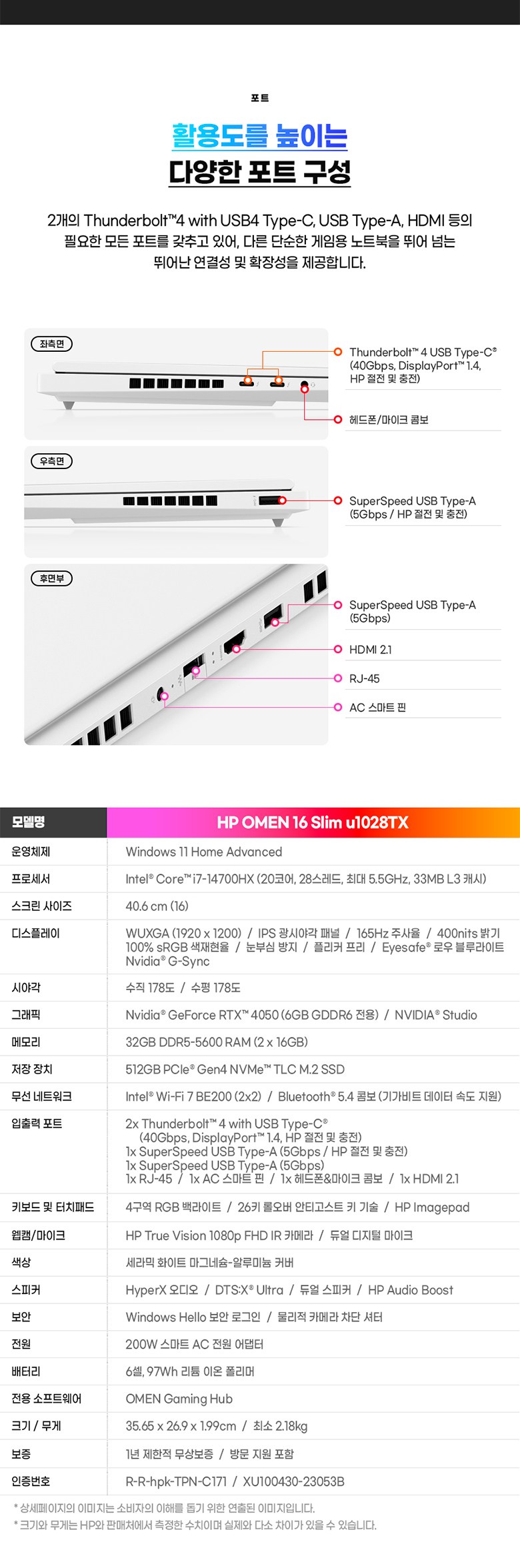 | 품명 및 모델명 | 노트북 컴퓨터 HP OMEN 16 Slim u1028tx / TPN-C171 | KC 인증정보 | XU100430-23053B, R-R-hpk-TPN-C171 |