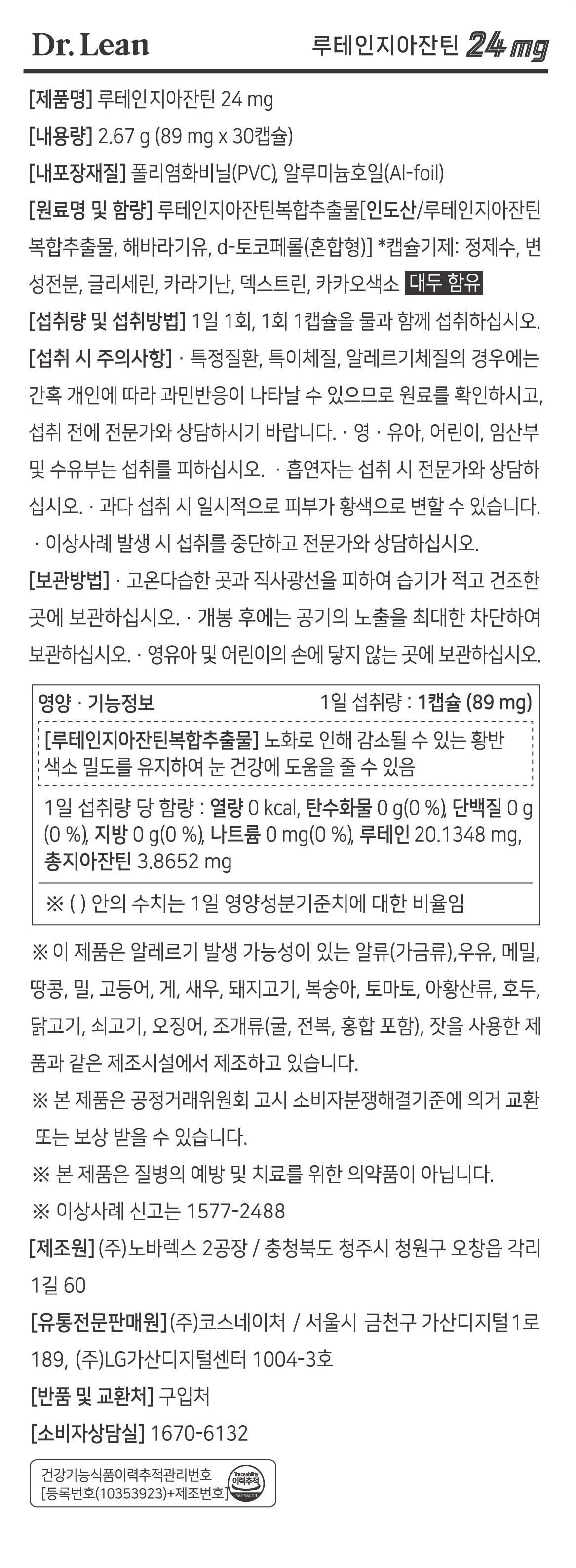| 원료명 및 함량 | 컨텐츠 참조 | 영양정보 | 컨텐츠 참조 |