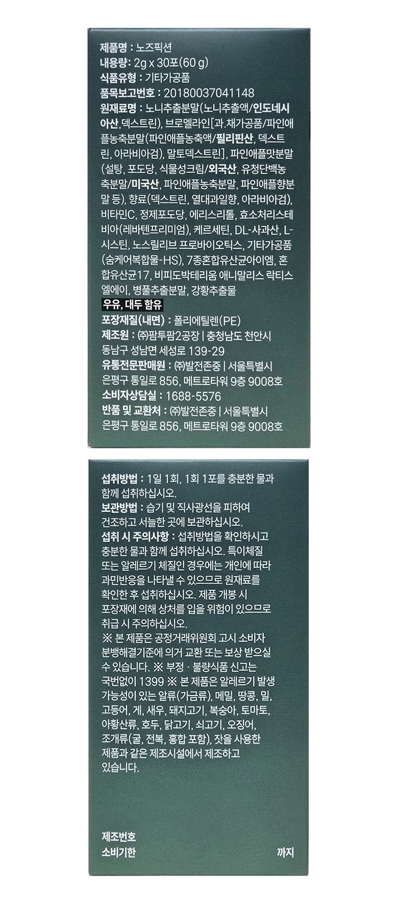 | 제조연월일, 소비기한 또는 품질유지기한 | 상품 상세페이지 참조 | 세부 품목군별 표시사항 | 상품 상세페이지 참조 |