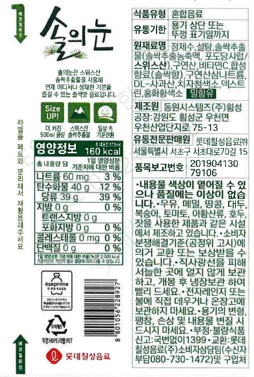 | 제품명 | 솔의눈 | 식품의 유형 | 혼합음료 |