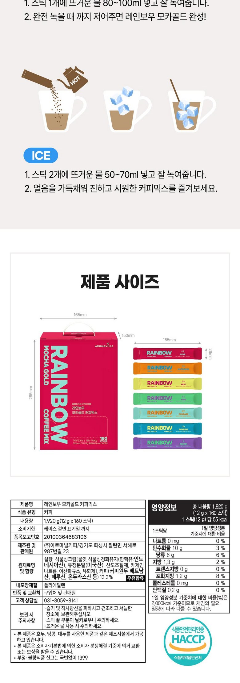 | 제품명 | 레인보우 모카골드 커피믹스 12g X 100스틱 X 3박스 | 식품의 유형 | 커피 |