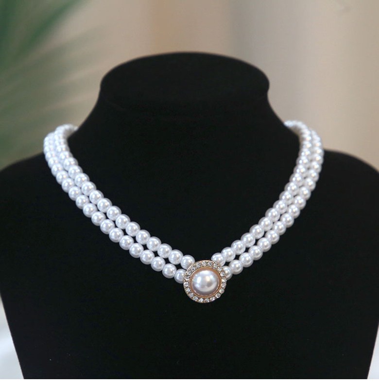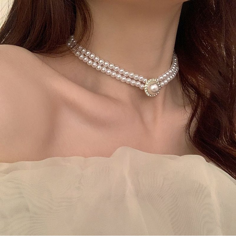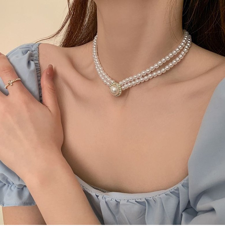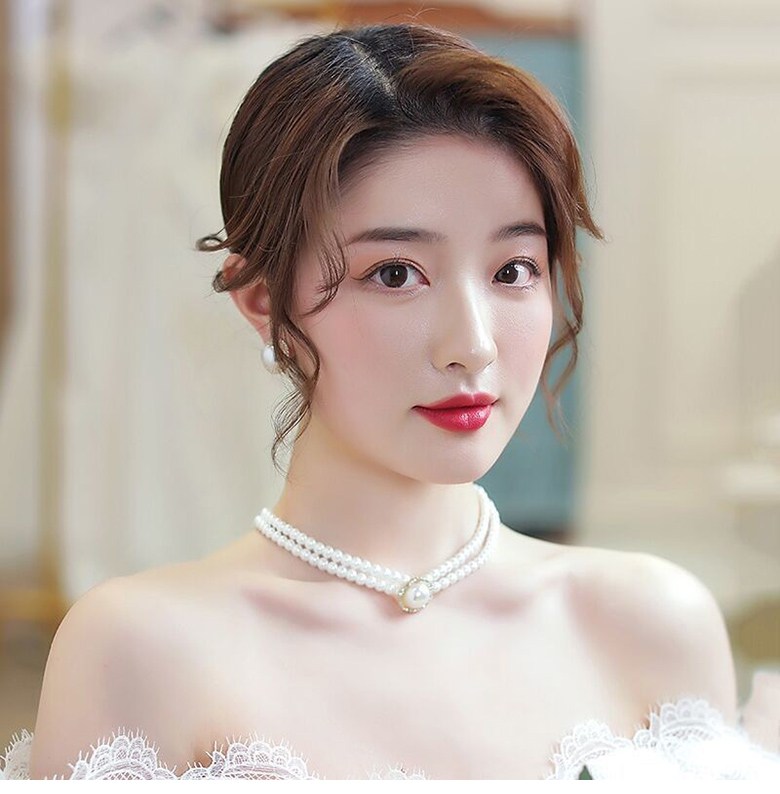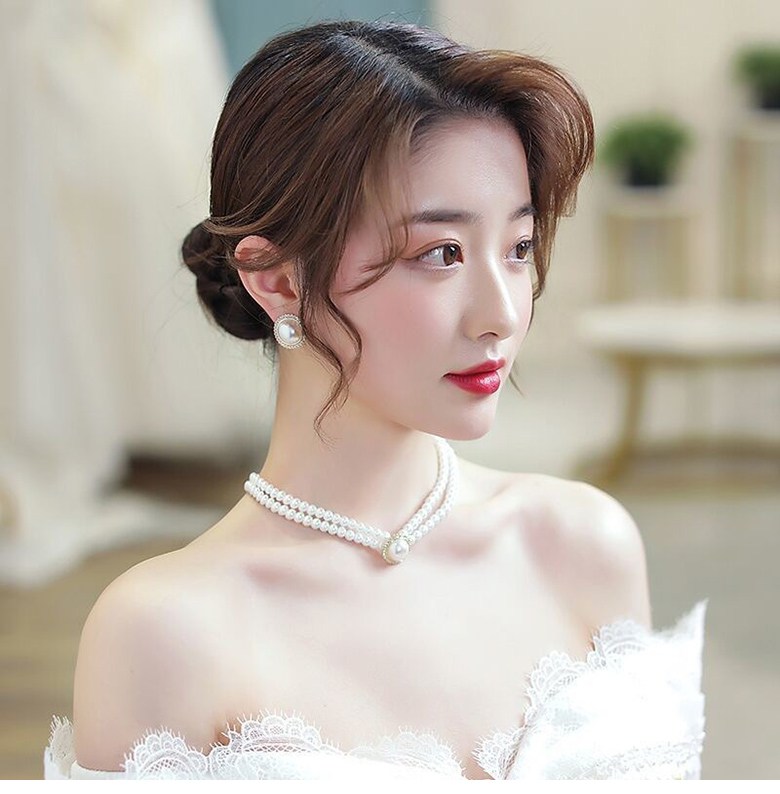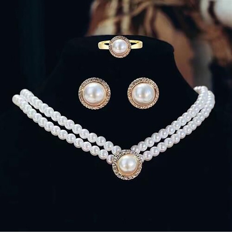 FANSYLI 진주 귀걸이 목걸이 반지 3종 세트 한복 웨딩 파티 드레스 주얼리세트2312F01