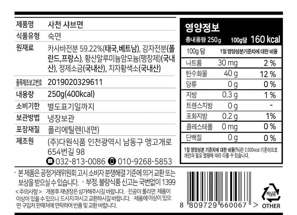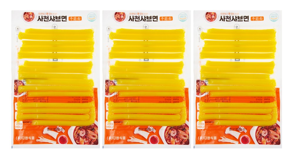 쫀득쫀득한 식감이 매력적인 사천샤브면을 소개할게요. 사천샤브면은 마라탕과 잘 어울린다고 알려진 재료인데요. 카사바전분, 감자전분 등이 들어가 부드럽고 쫄깃하답니다. 고소한 풍미가 가득해 떡볶이나 닭볶음탕에 넣어 먹어도 맛있어요.