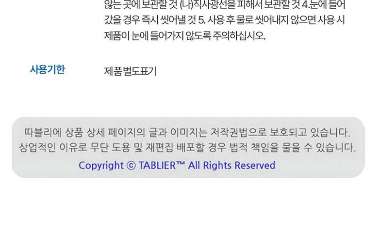 | 사용기한 또는 개봉 후 사용기간 | 개봉 후 3년(제품에 별도표기) | 사용방법 | 상품 상세페이지 참조 |