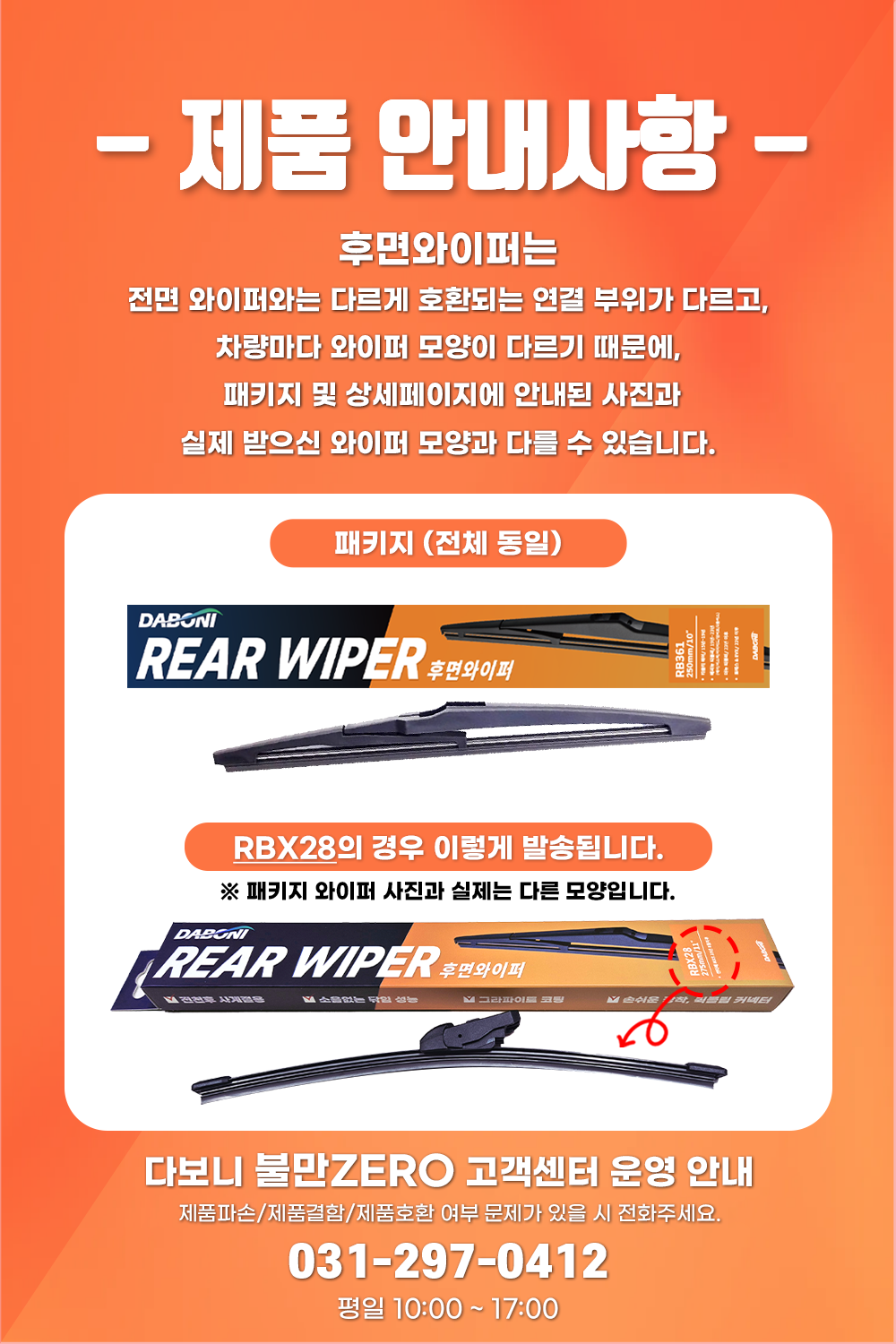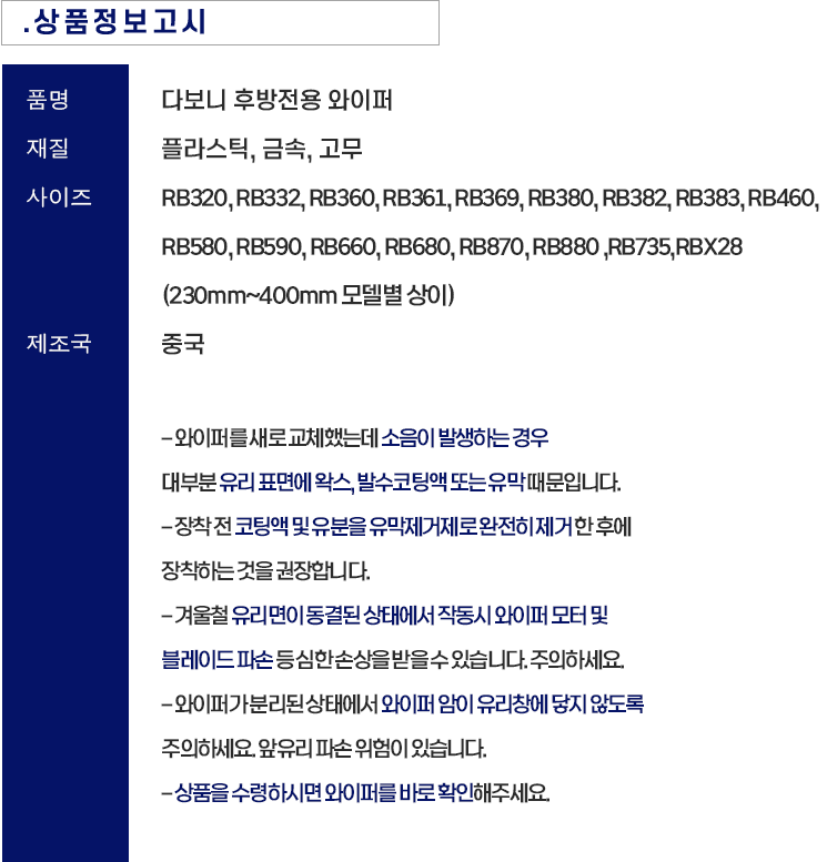 | 품명 및 모델명 | 다보니 자동차 후방 전용 Rear 와이퍼 RB380 | 동일모델 출시년월 | 2023년12월 |
