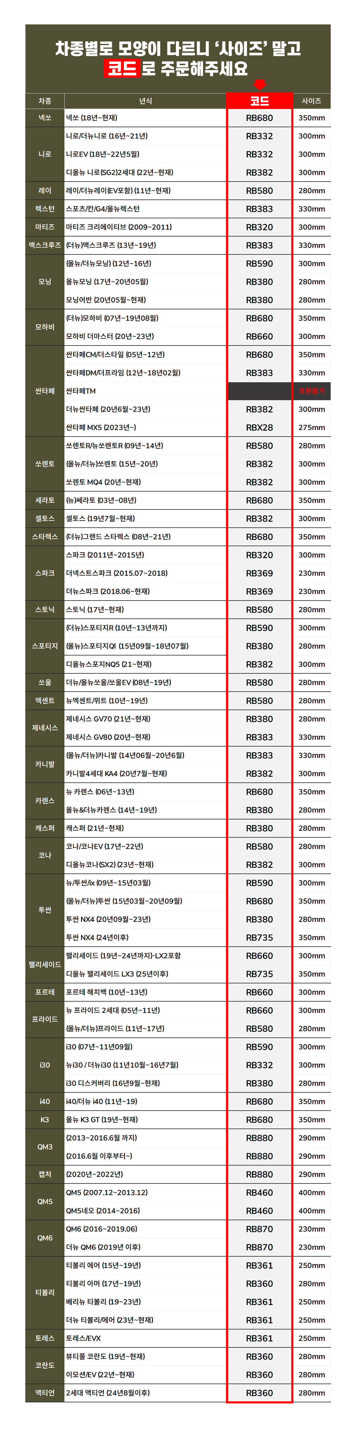 | KC 인증정보(자동차관리법에 따른 자기인증 대상 자동차부품에 한함) | 해당없음 | 제조자(수입자) | 업체미제공/주식회사 씨앤에프 |