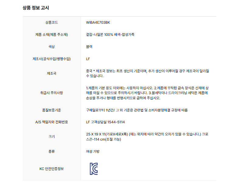 | 제조자(수입자) | 상품 상세페이지 참조 | 제조국 | 상품 상세페이지 참조 |