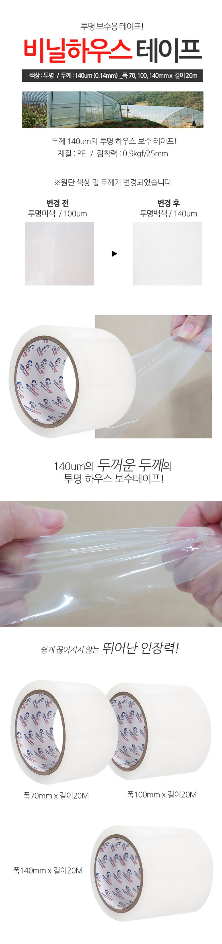 | 품명 및 모델명 | 비닐 하우스 보수 테이프 | 인증/허가 사항 | 해당없음 |