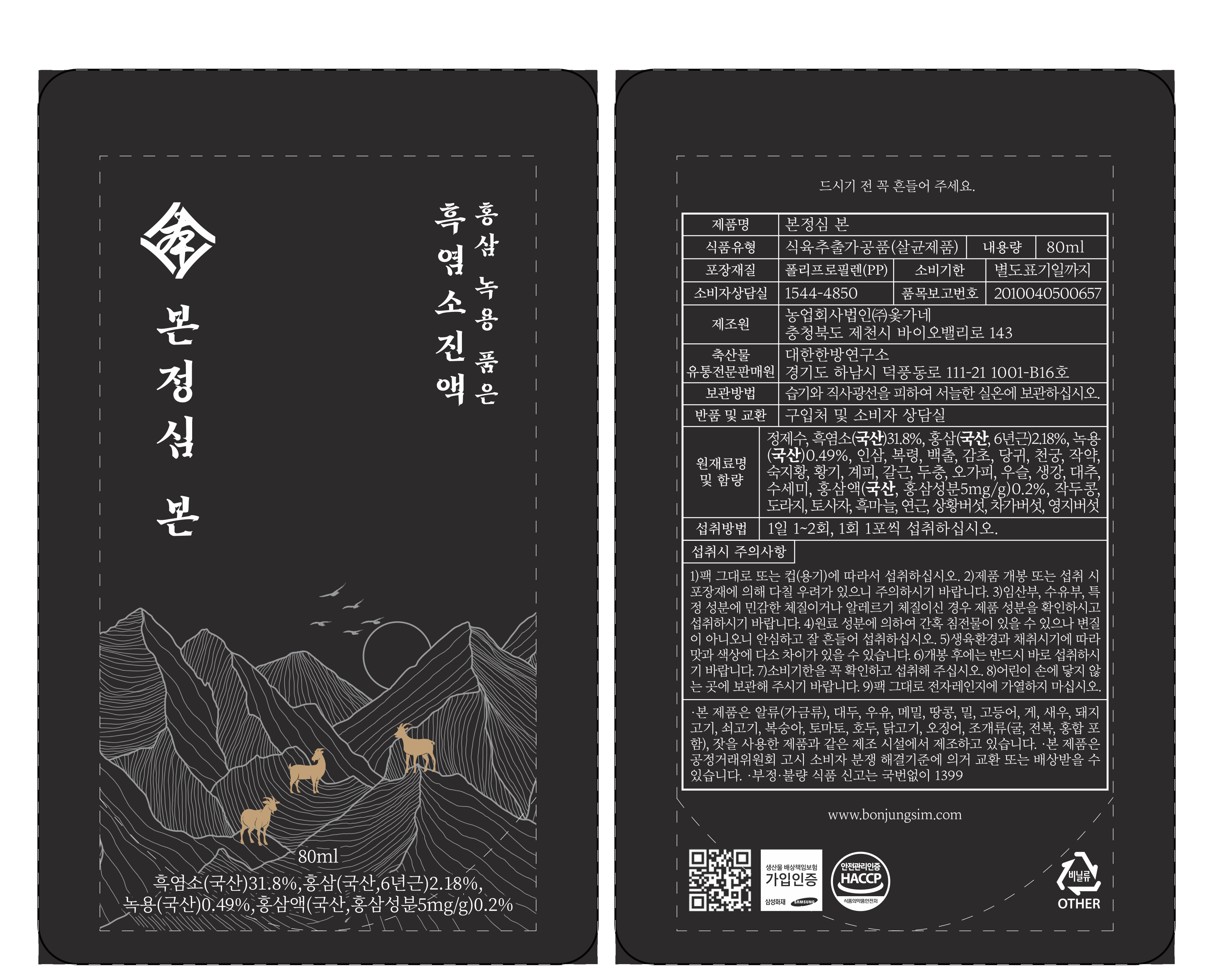 | 포장단위별 내용물의 용량(중량), 수량 | 80ml, 60개 | 원재료명 및 함량 | 컨텐츠 참조 |