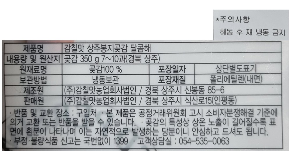 | 제조연월일, 소비기한 또는 품질유지기한 | 제조년월일 : 2025년 12월 15일 이후인 제조상품 | 세부 품목군별 표시사항 | 농수산물 : 유전자변형(해당 없음) / 지리적 표시사항(해당 없음) |