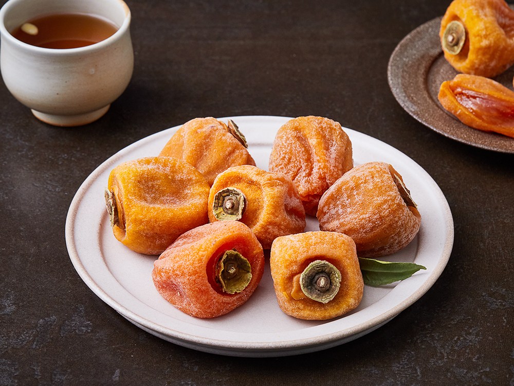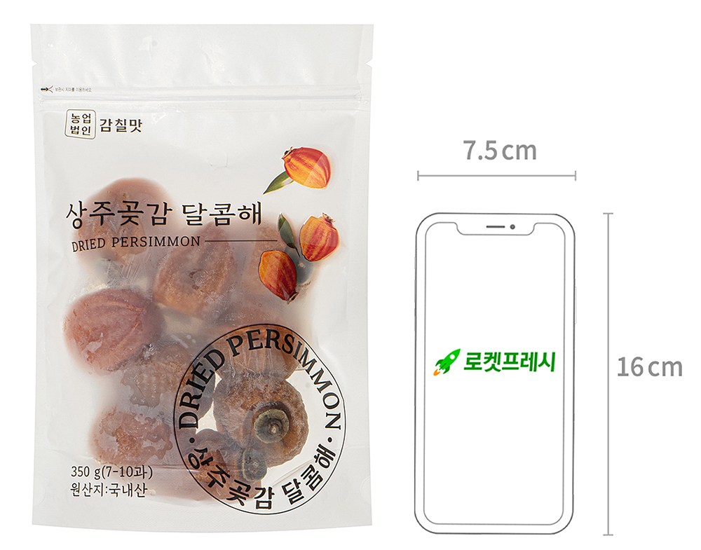 오동통한 몸집의 곶감이에요. 알맞게 말려 겉은 쫀득하고 속은 촉촉한 식감이 매력적이지요. 한 입 베어 물면, 진한 달콤함이 입안을 가득 채운답니다. 향긋한 차나 시원한 식혜를 곁들여 정갈한 다과상을 완성해보세요.