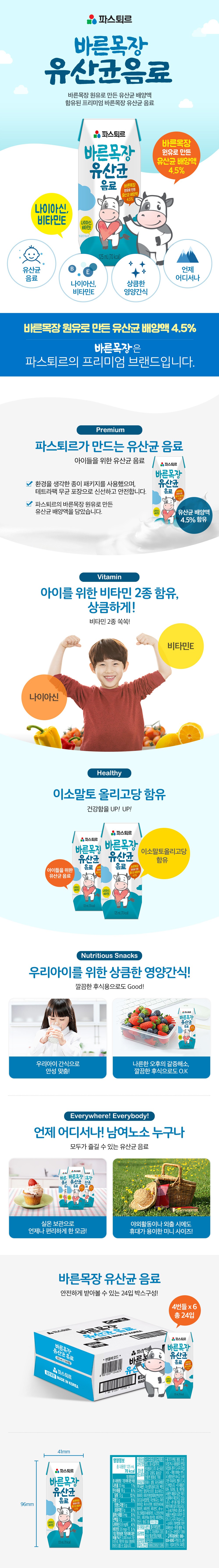 | 제품명 | 파스퇴르 바른목장 유산균음료 | 식품의 유형 | 컨텐츠 참조 |