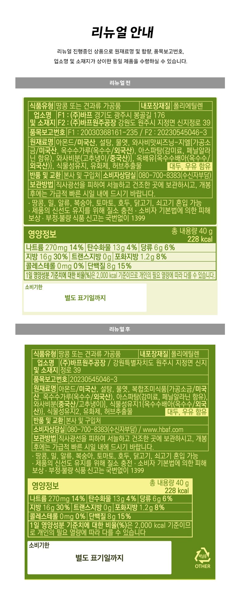 | 제품명 | 와사비맛 아몬드 | 식품의 유형 | 컨텐츠 참조 |