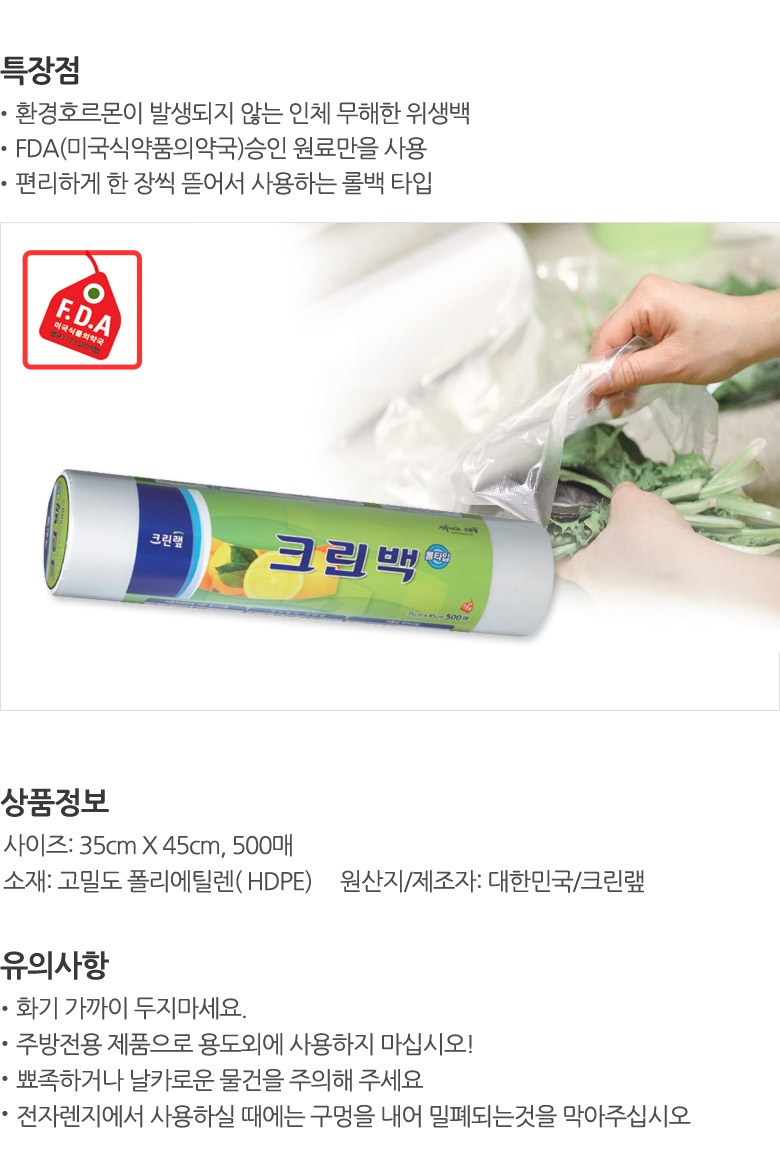 | 품명 및 모델명 | 롤백 35cm*45m 500매 | 인증/허가 사항 | 해당없음 |