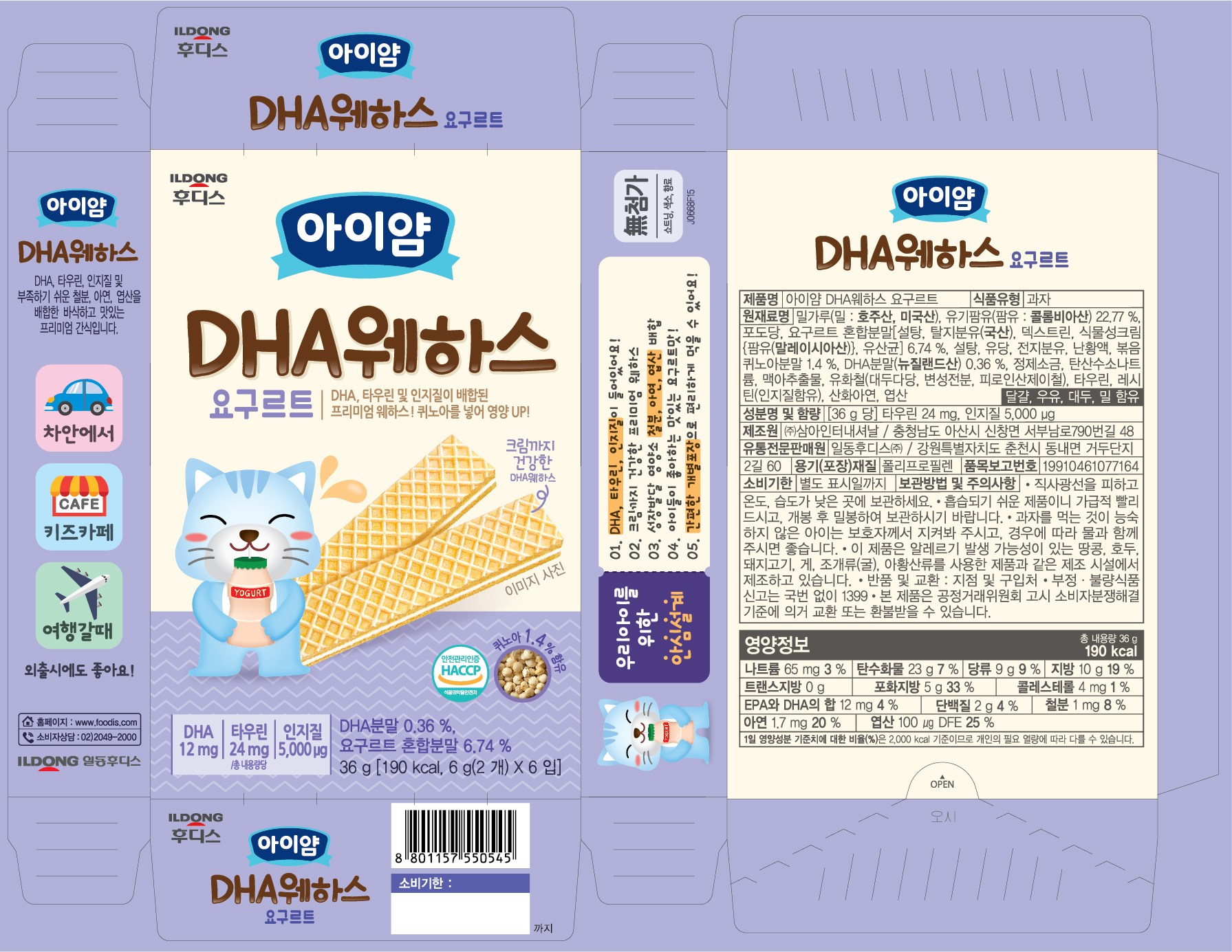 | 포장단위별 내용물의 용량(중량), 수량 | 36g x 20개 | 원재료명 및 함량 | 컨텐츠 참조 |