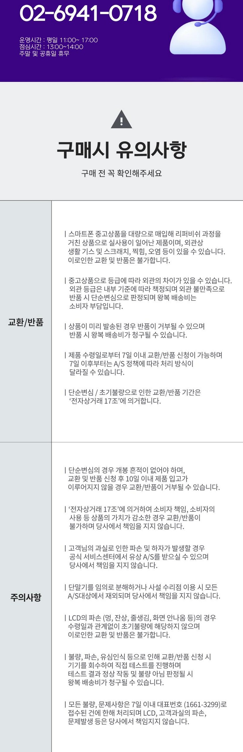 - ㆍ교환/반품에 관한 일반적인 사항은 판매자가 제시사항보다 관계법령이 우선합니다.