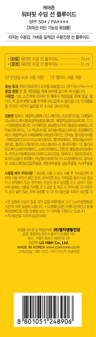 | 용량(중량) | 70ml + 31ml | 제품 주요 사양 | 모든 피부용 |