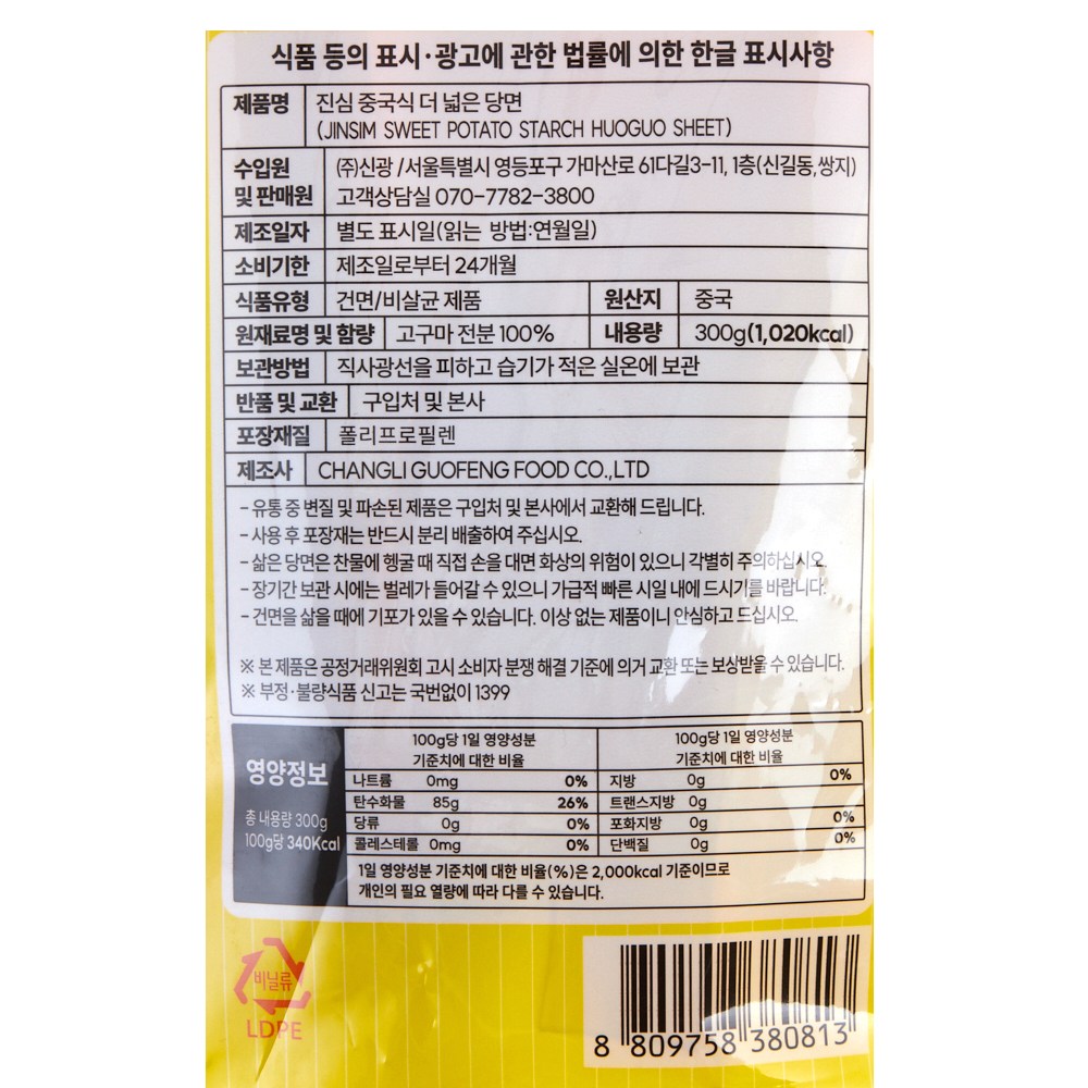 - 당면종류: 납작당면