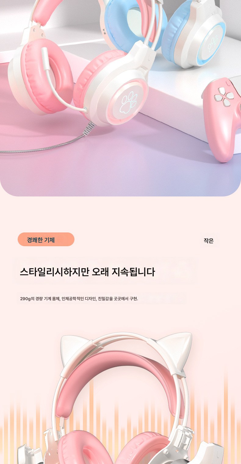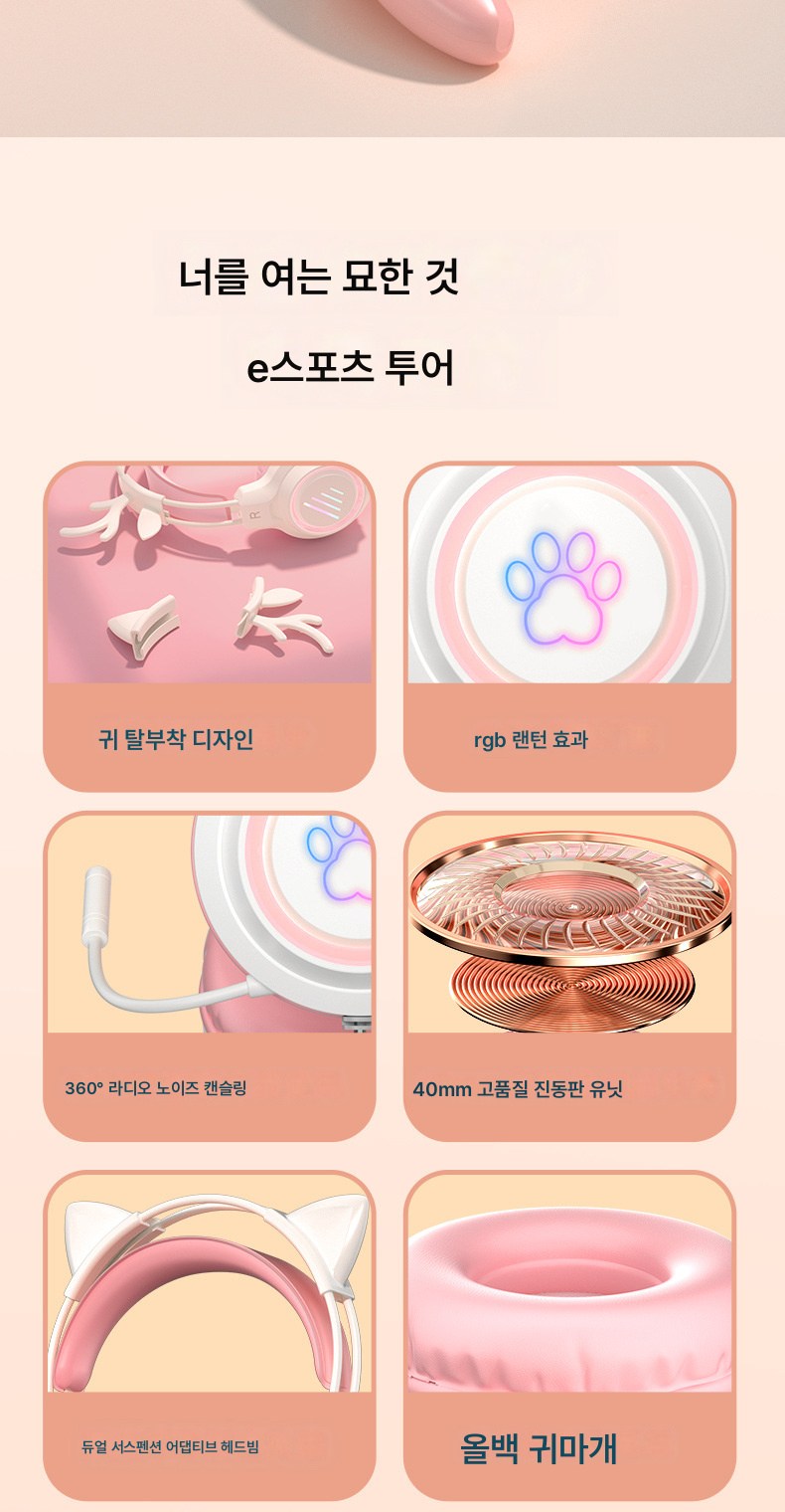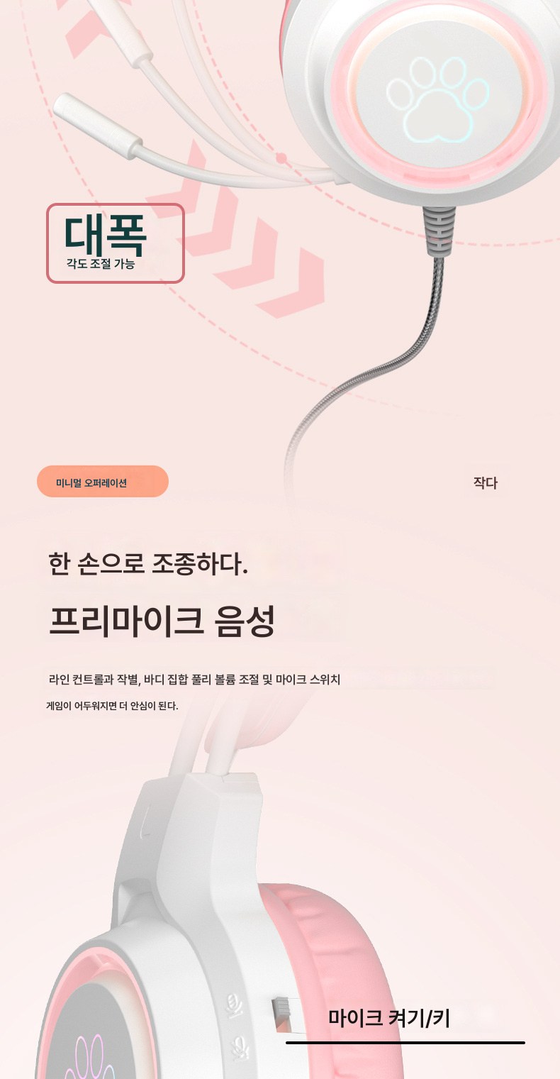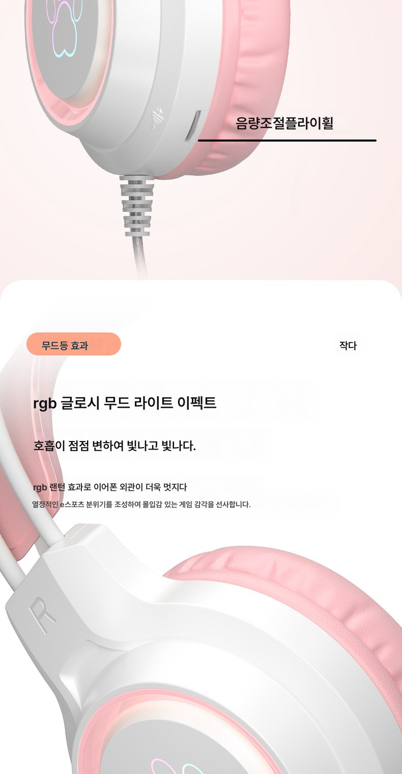 캣이어 e스포츠 헤드셋 유선 RGB 발광 게이밍 헤드셋 헤드셋 캐릭터 헤드셋 가