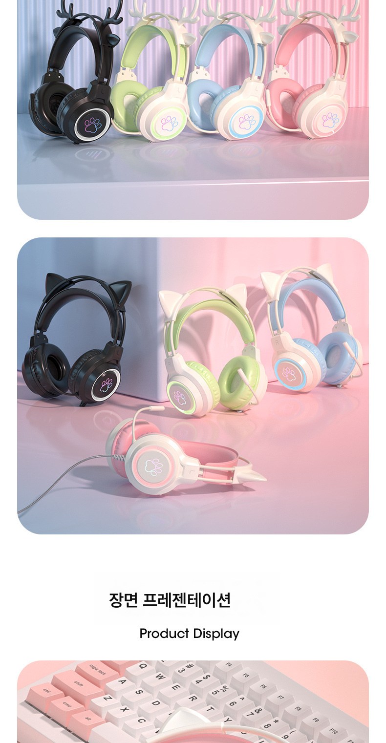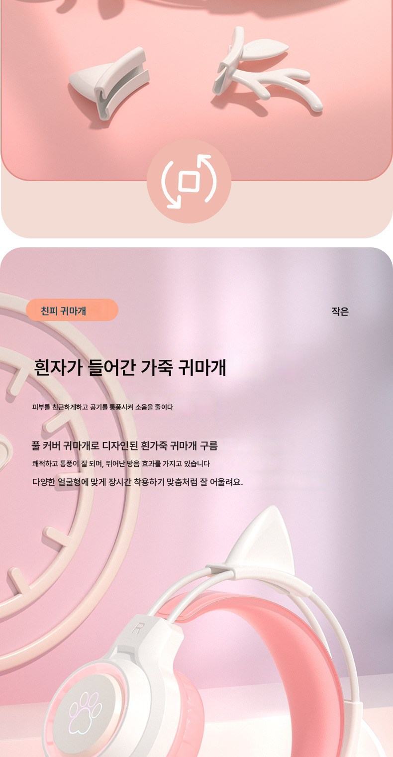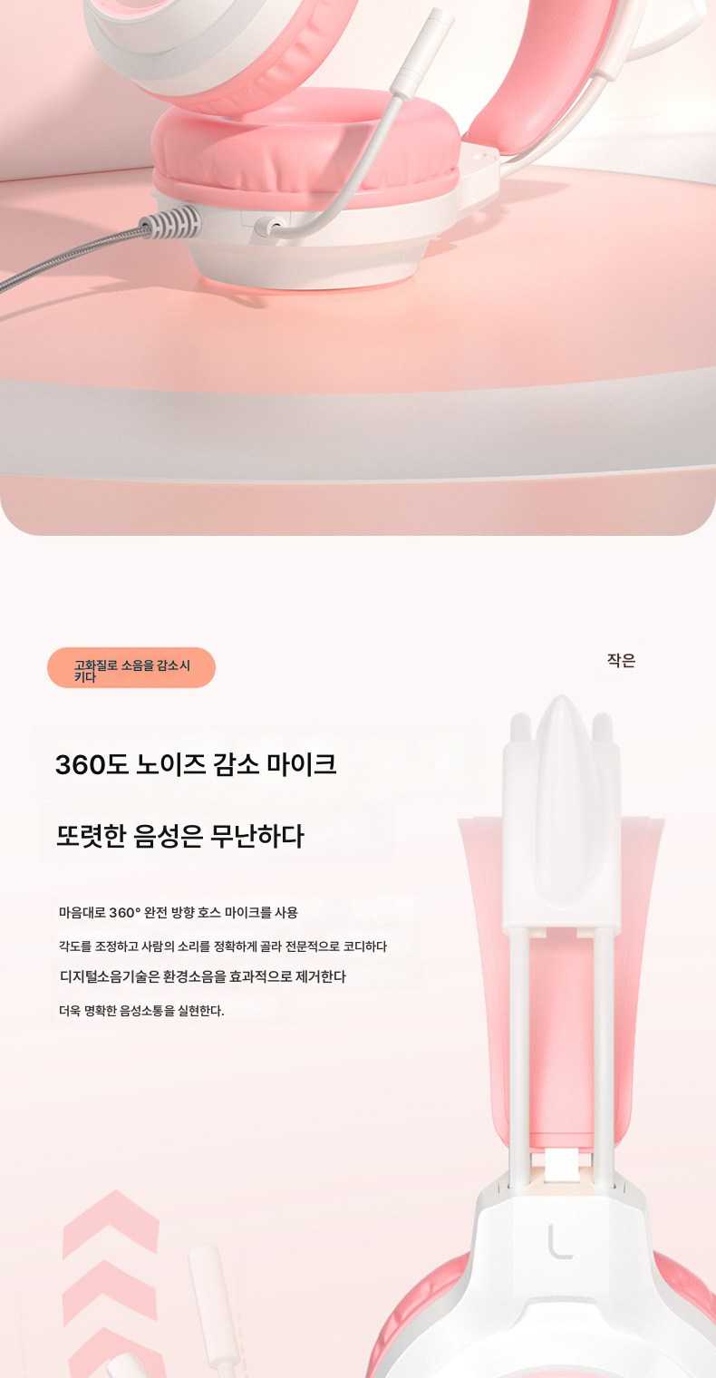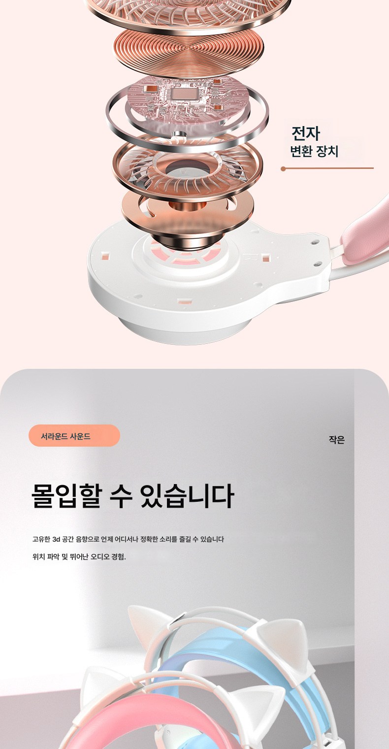 캣이어 e스포츠 헤드셋 유선 RGB 발광 게이밍 헤드셋 헤드셋 캐릭터 헤드셋 가