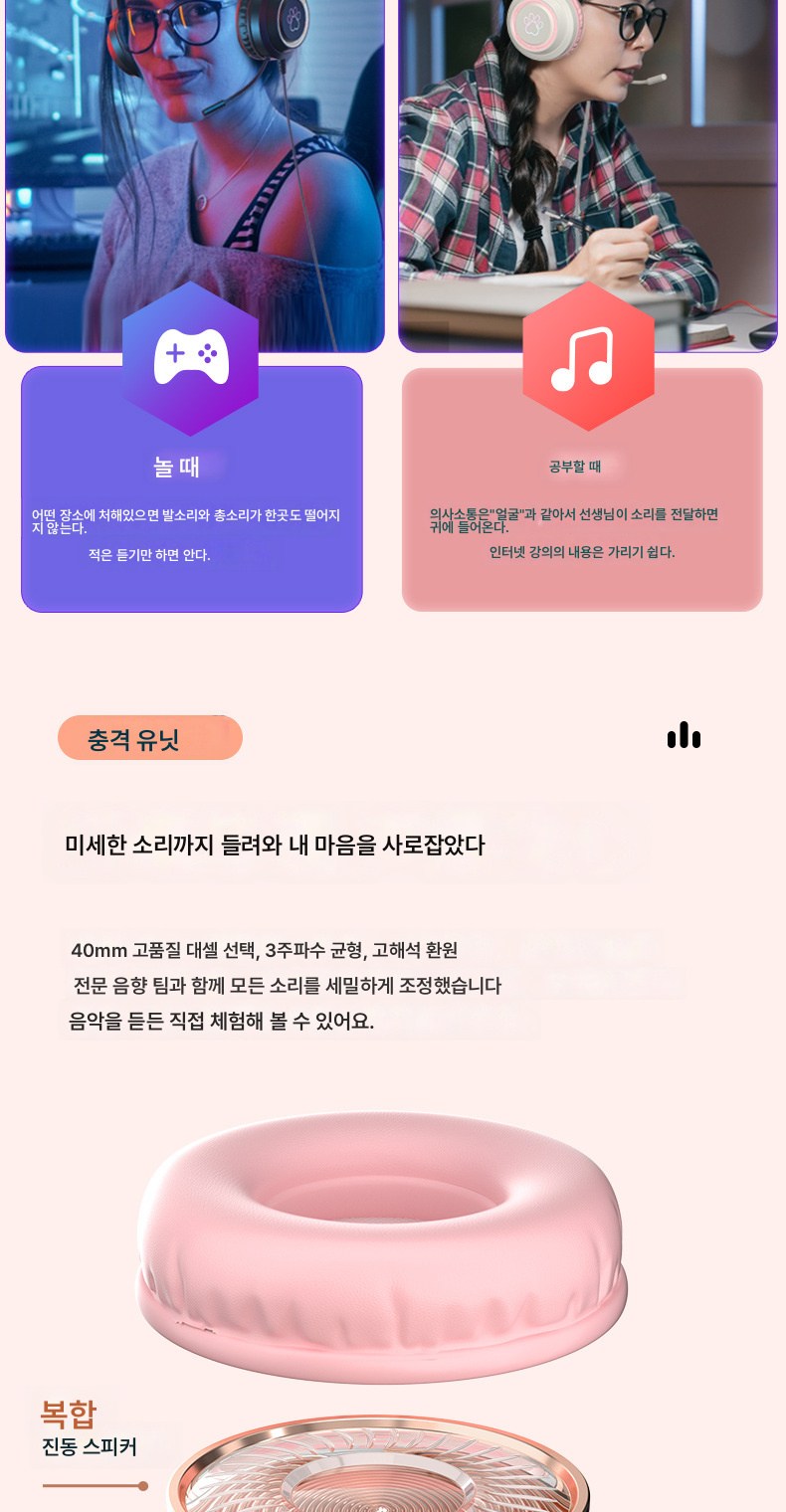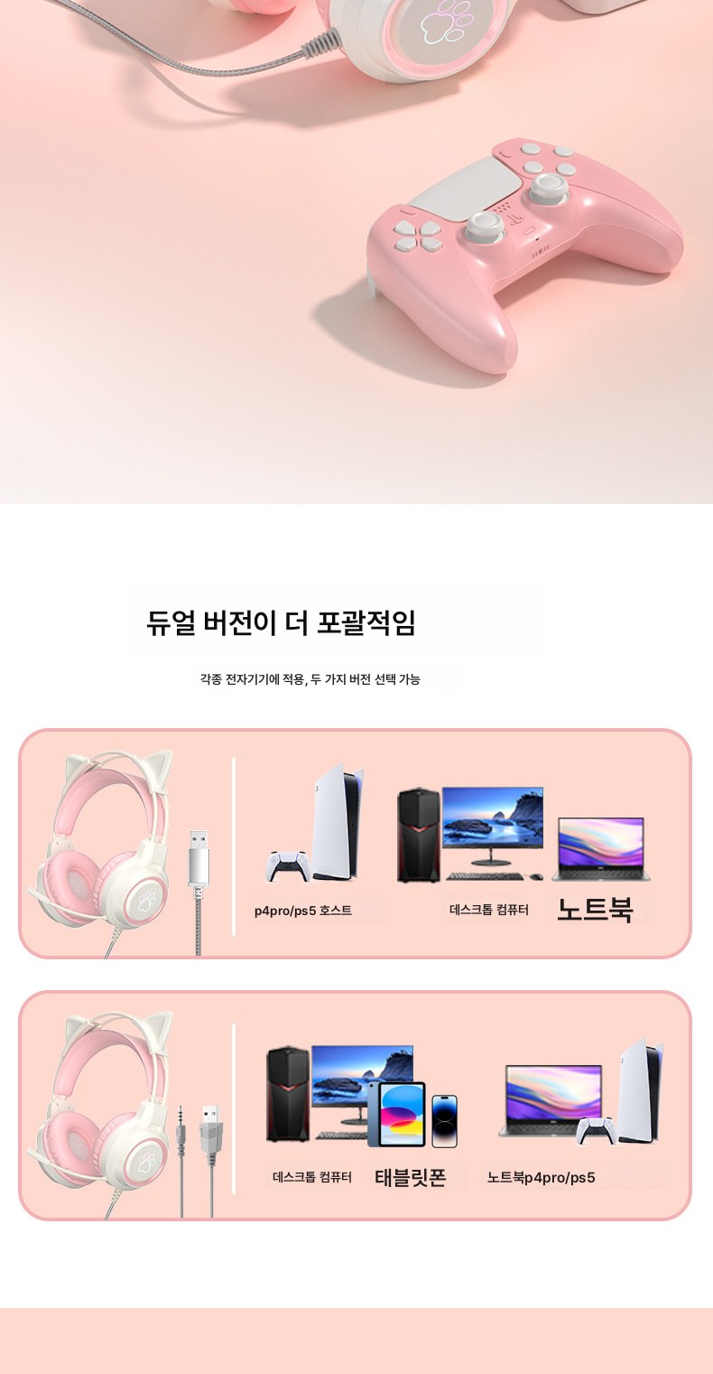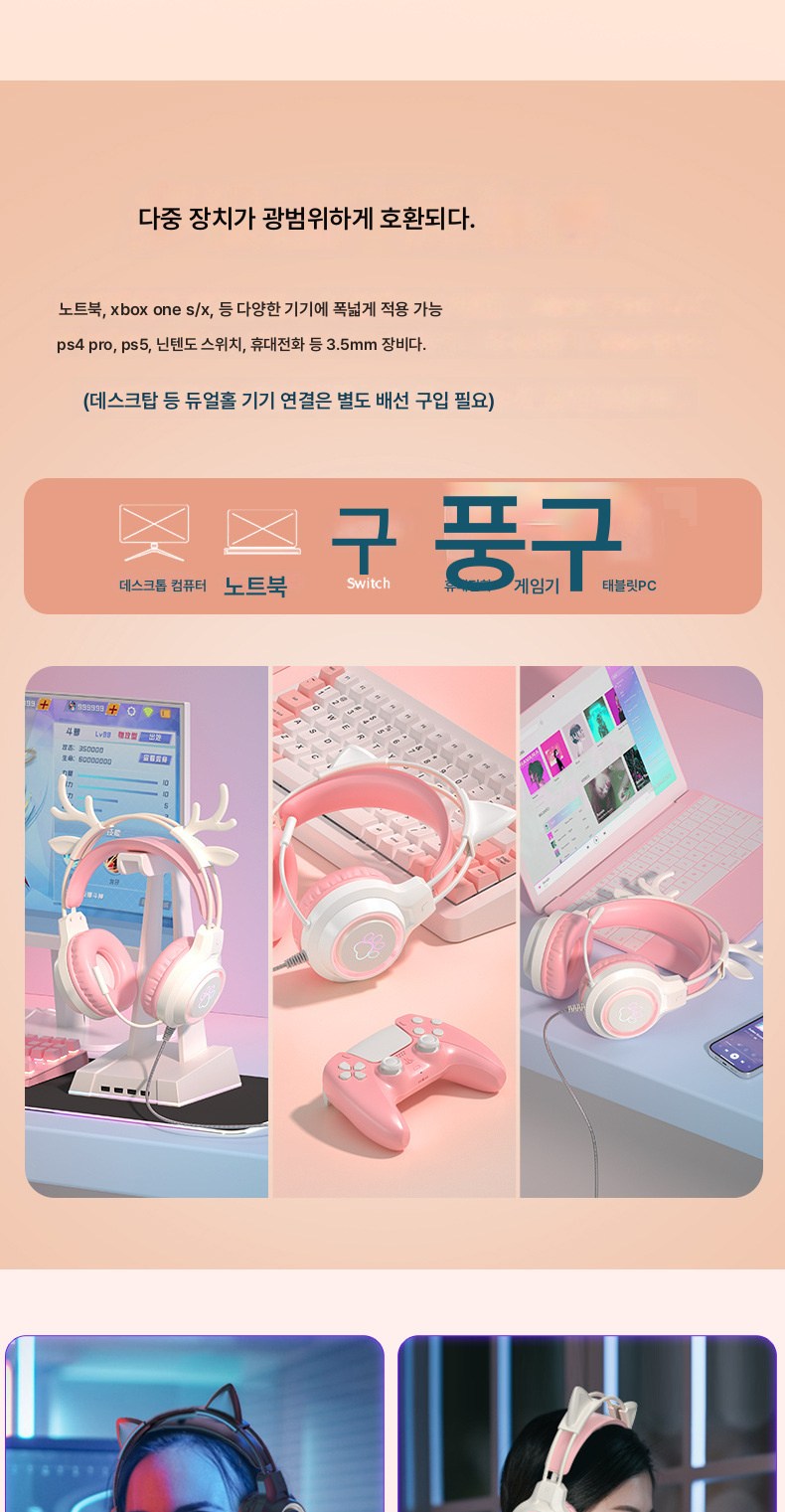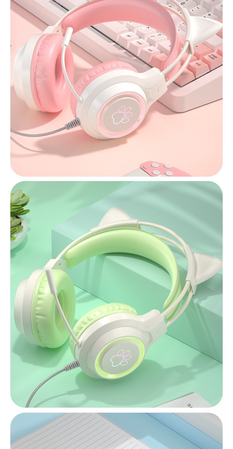 캣이어 e스포츠 헤드셋 유선 RGB 발광 게이밍 헤드셋 헤드셋 캐릭터 헤드셋 가