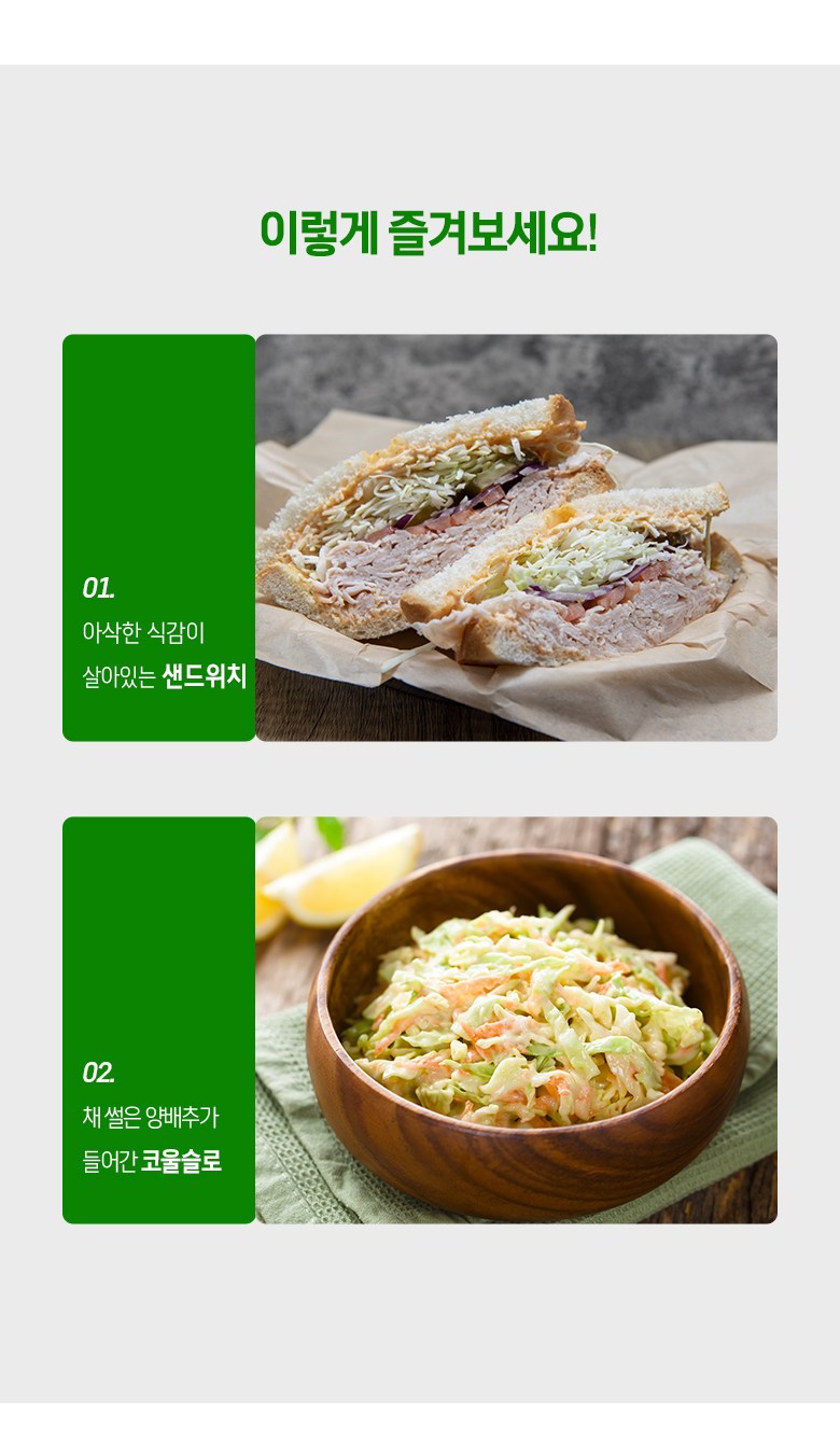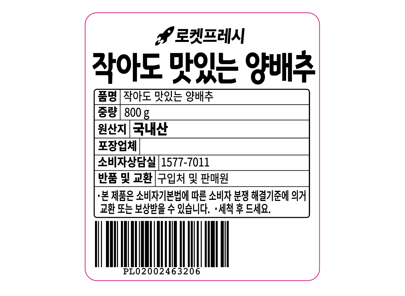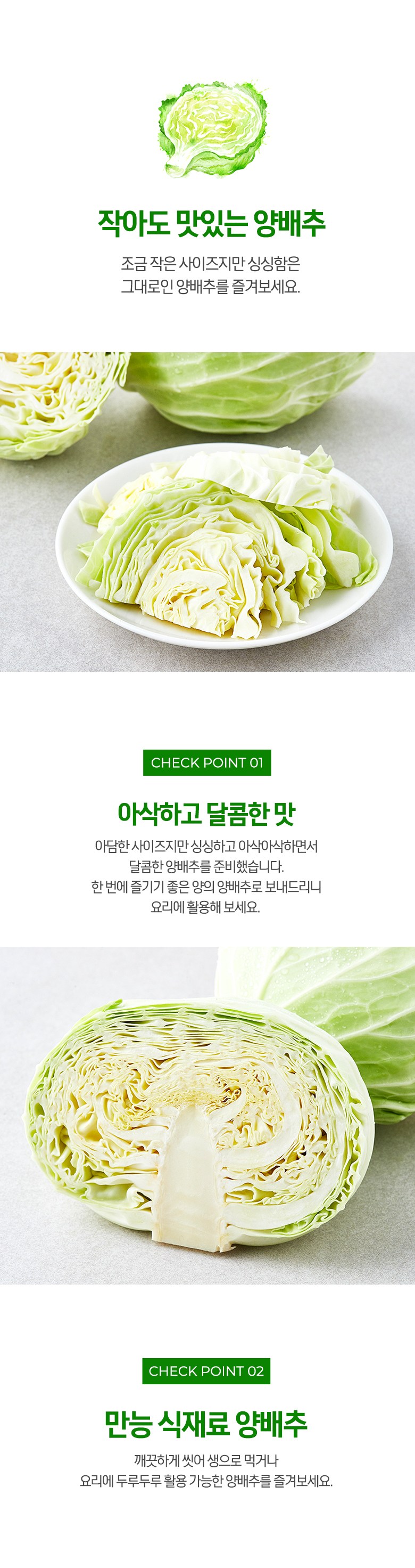 | 품목 또는 명칭 | 작아도 맛있는 양배추 | 포장단위별 내용물의 용량(중량),수량,크기 | 800g |