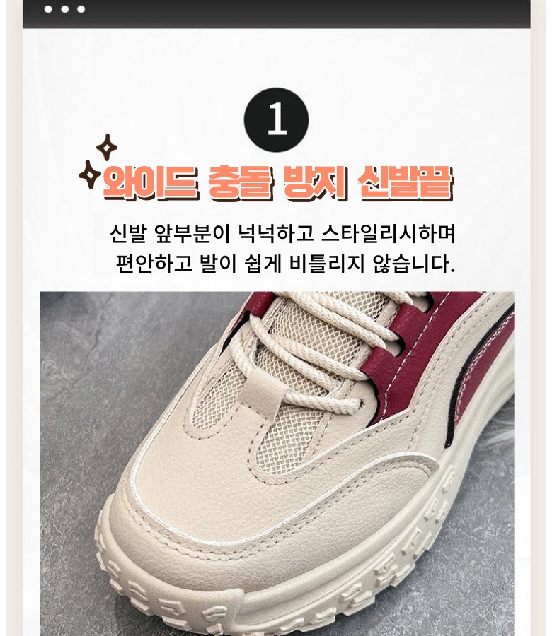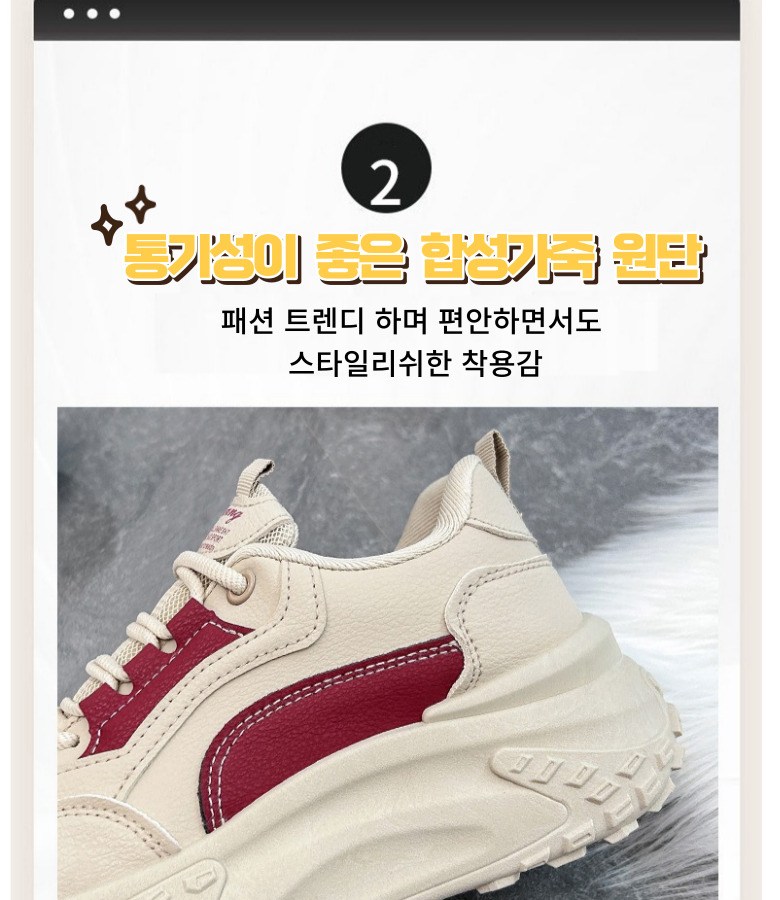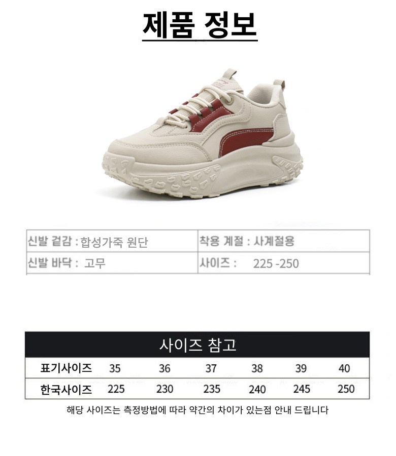 | 제품의 주소재(운동화인 경우에는 겉감,안감을 구분하여 표시) | 겉감:인조가죽 / 안감: 망사원단 | 색상 | 레드,카키,블랙 |