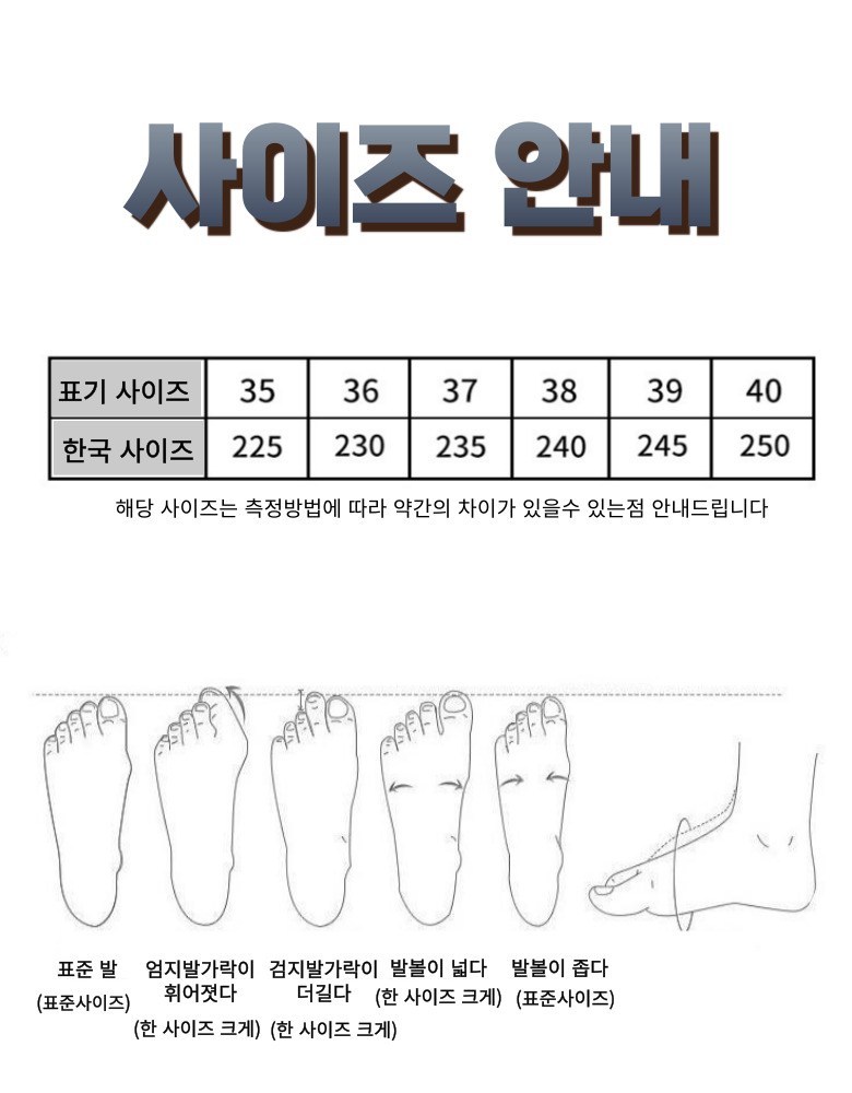 | 치수 | 발길이: 225~250 (mm) / 굽높이: 5 (cm) | 제조자(수입자) | 해외협력사(유한회사에프앤엠코리아) |